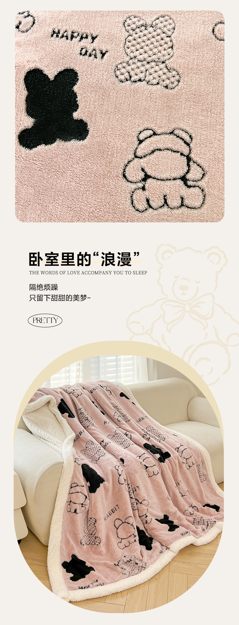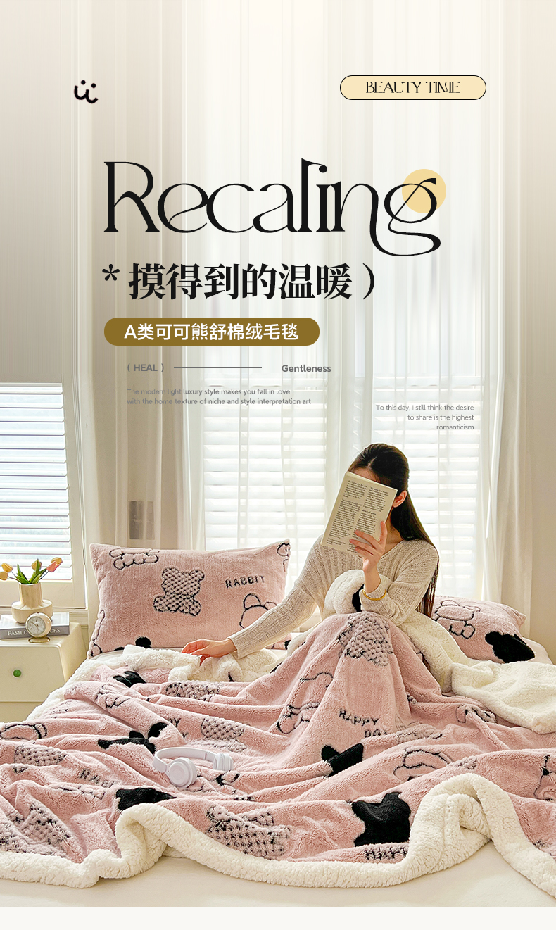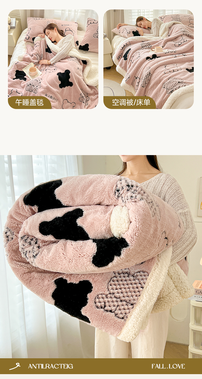欧邦 2025新款A类舒棉绒毛毯盖毯毯子-可可熊 可可熊-浅粉