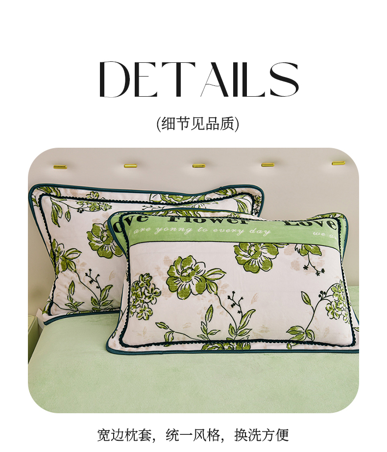 赫本家纺 2025新品8-9斤爆品牛奶绒四件套床裙款金雕绒法莱绒四套件 熊猫乐园-绿,熊猫乐园-绿