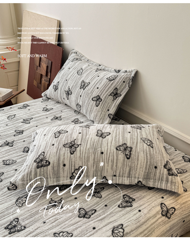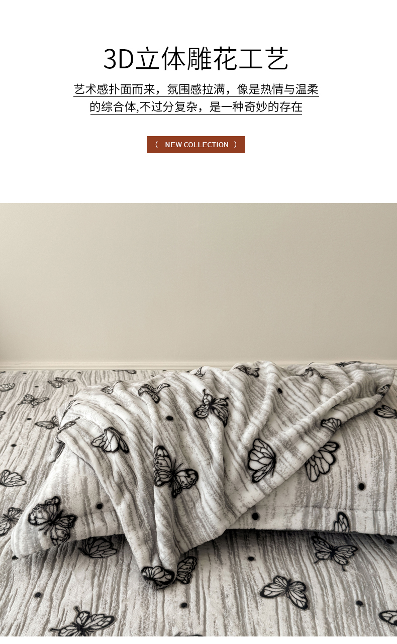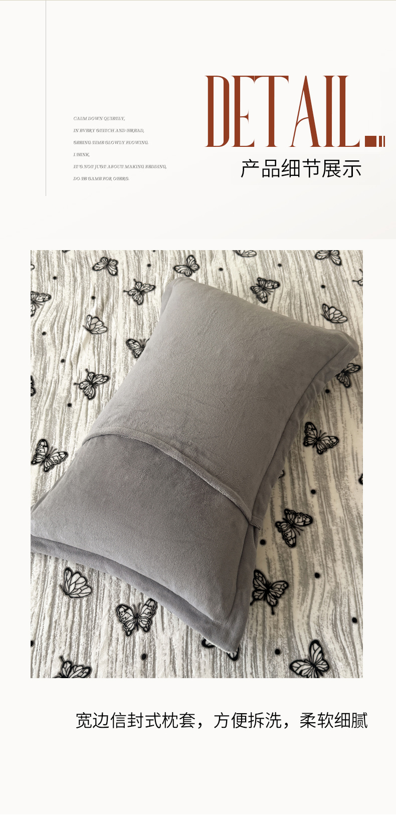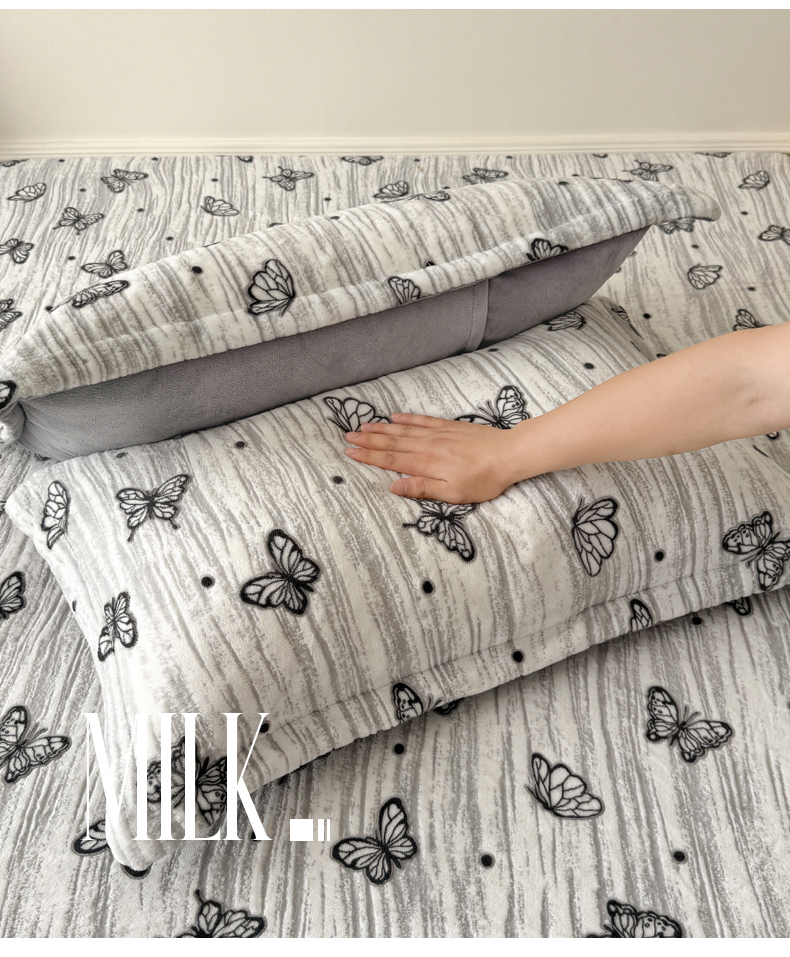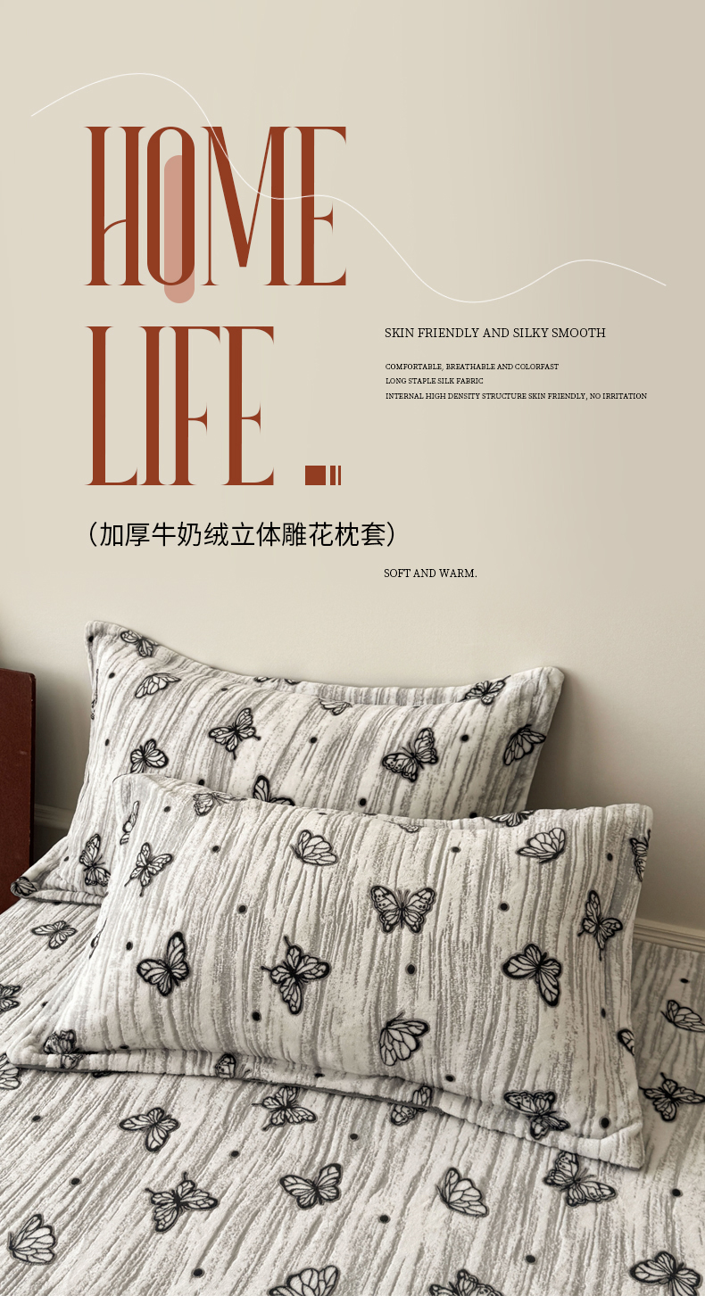 商品名称:LIFE.丽芙 2025秋冬新款A类牛奶绒加厚立体雕花压线宽边枕套 蝶舞纷飞-灰