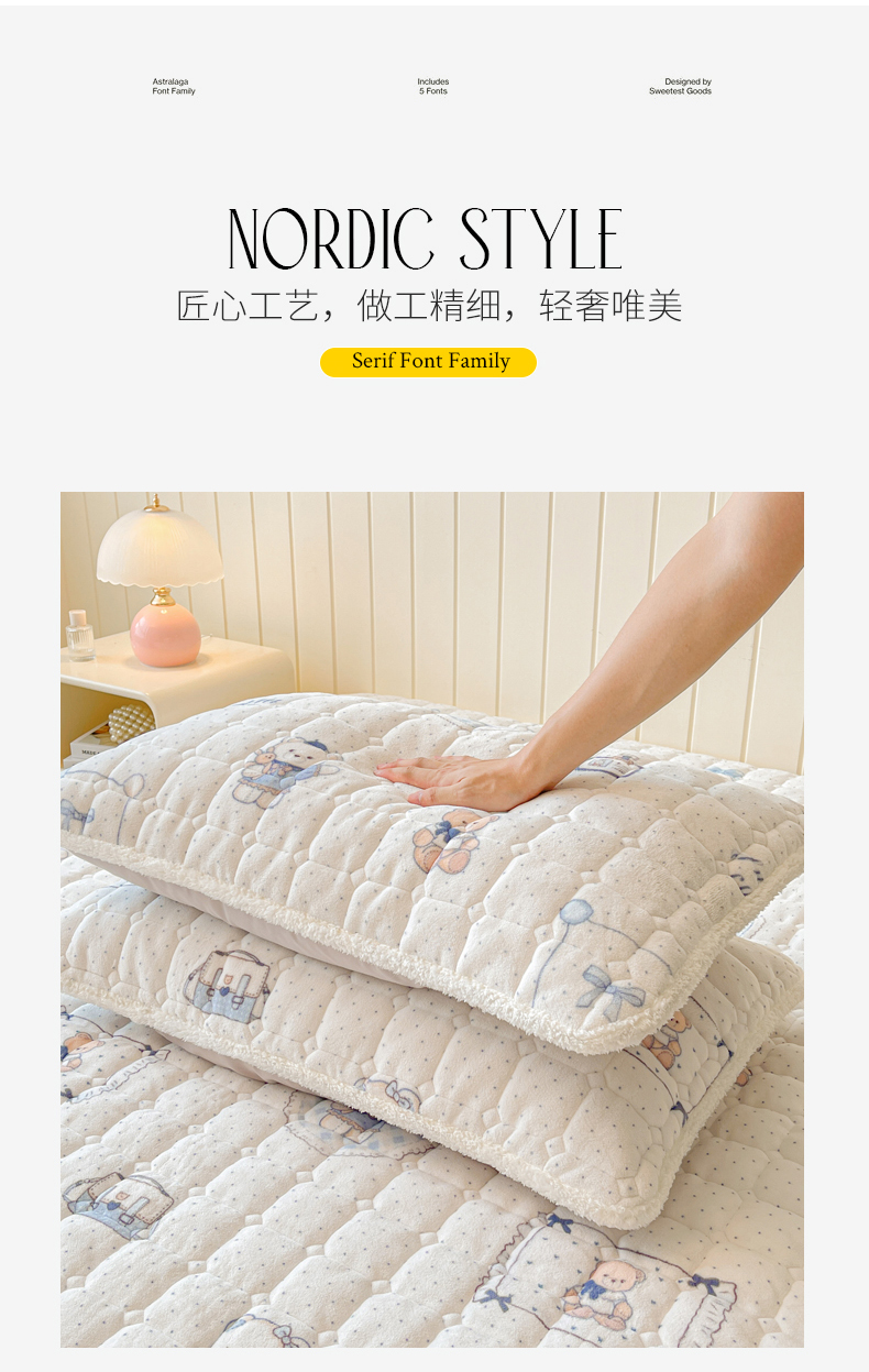 商品名称:LIFE.丽芙 2025秋冬新款A类牛奶绒加厚保暖夹棉枕套-包边款 贝果宝贝