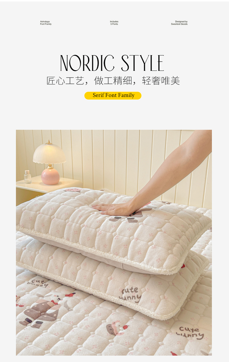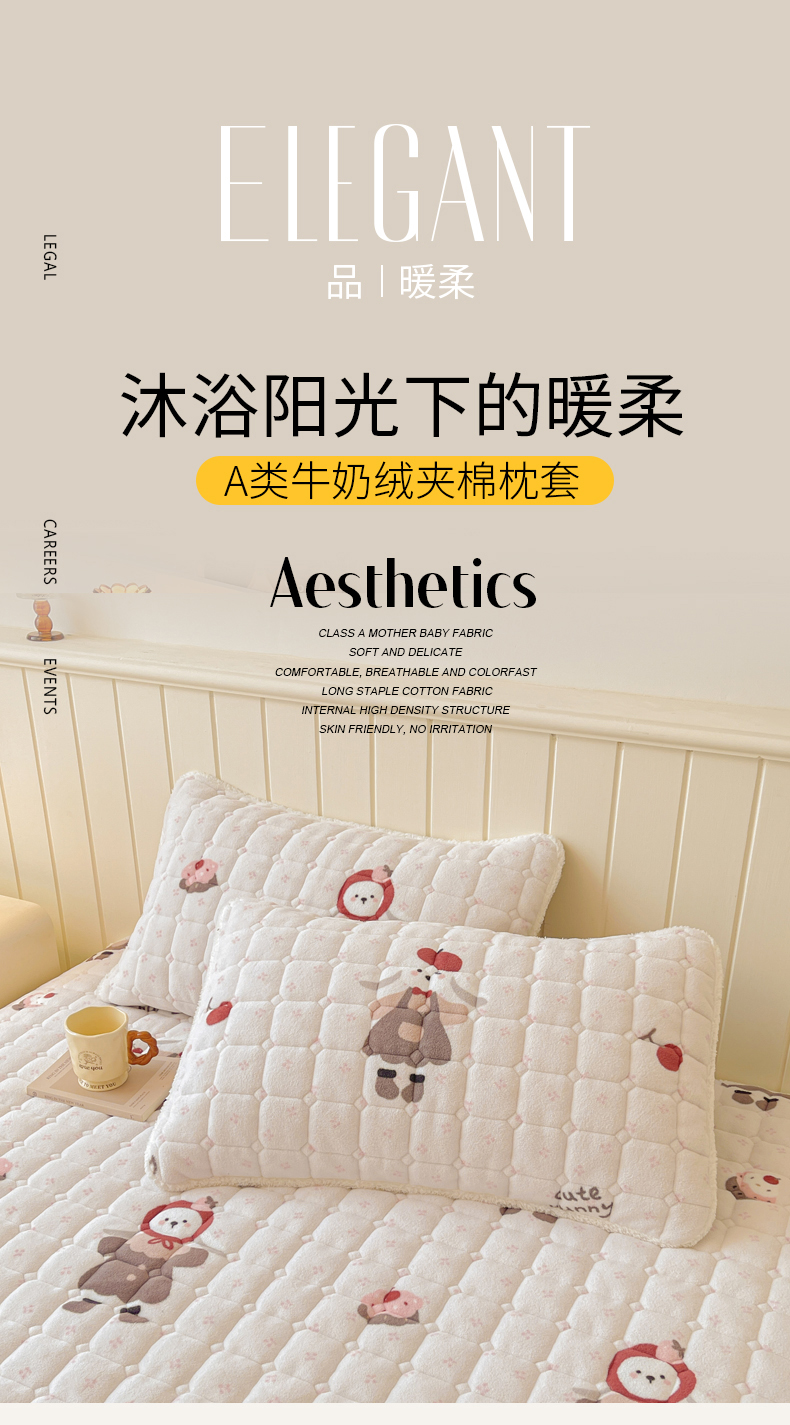 商品名称:LIFE.丽芙 2025秋冬新款A类牛奶绒加厚保暖夹棉枕套-包边款 小伙伴