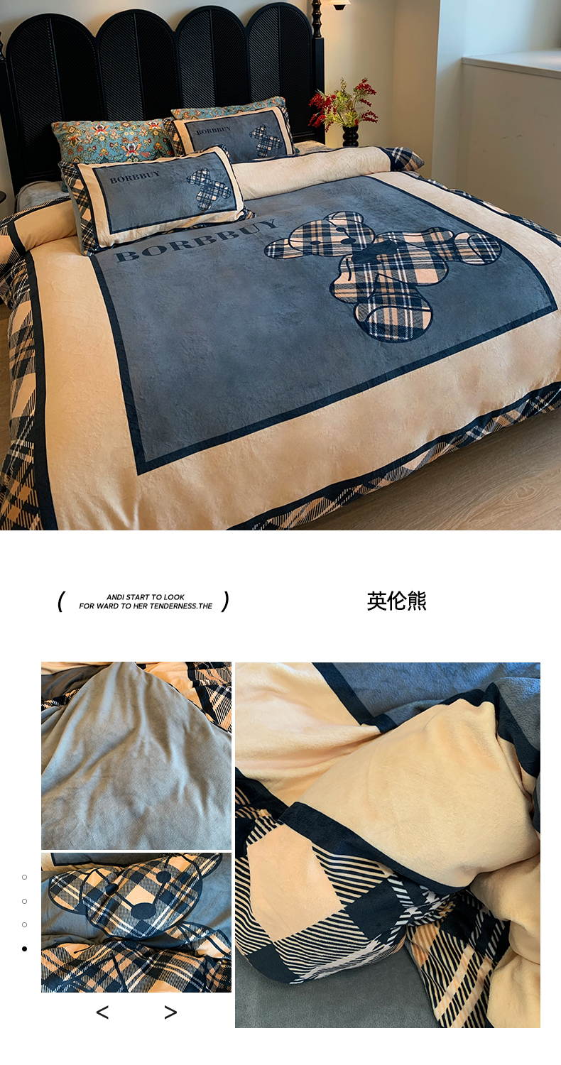 (总)色鬼布艺高端家居主号 2025新款潮牌数码印花牛奶绒四件套,爱心满满,白香,黑白V,黑色爱心,花千树,景年,咖老花,绿色花朵,晴末,条纹女孩,小白熊,小黑熊,英伦,英伦熊,枝繁叶茂