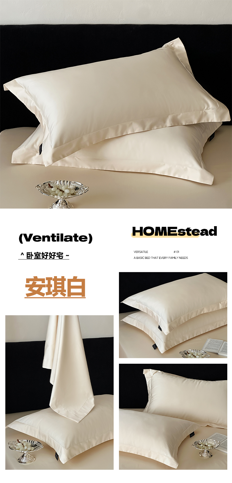 商品名称:三味舒屋 2025新款50s全棉纯棉纯色单枕套枕套单件-长期主义 长期主义-白桃乌龙
