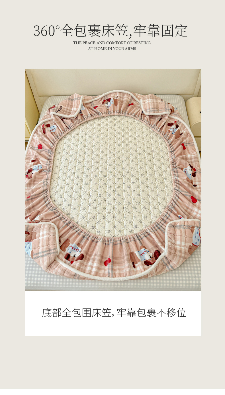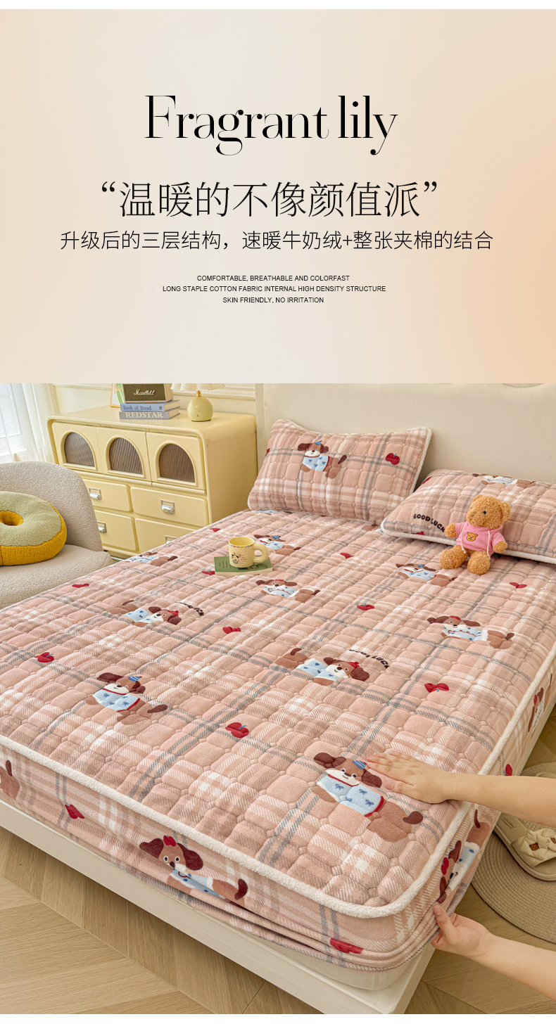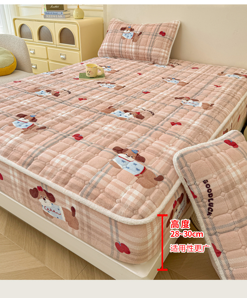 • 91家纺网 家纺一手货源 找家纺 LIFE.丽芙 2025秋冬新款牛奶绒加厚夹棉单床笠印花款床垫子保护套秋冬保暖床罩子三件套 皮皮狗