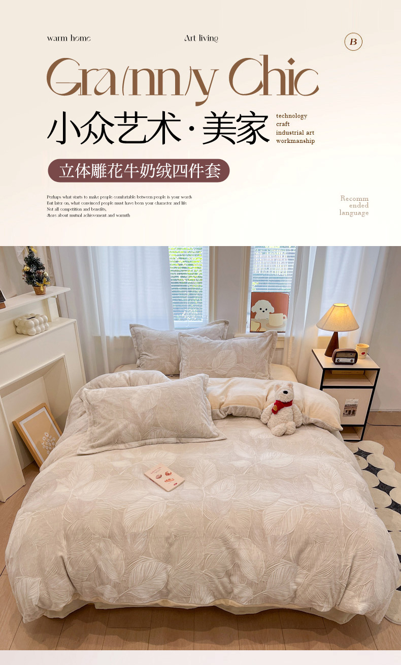 慕尚家纺 2025新款双色立体雕花牛奶绒单被套 羽翼卡其