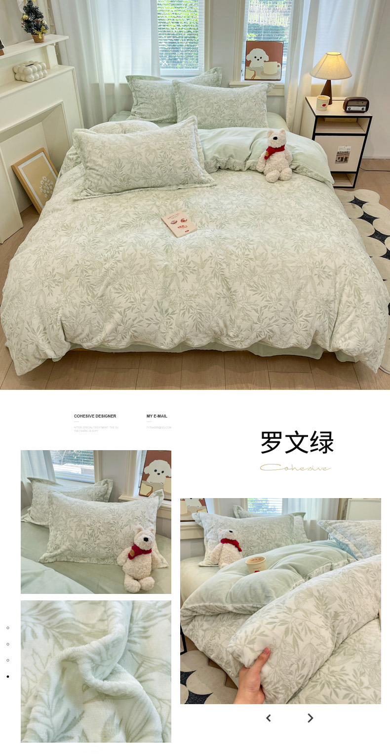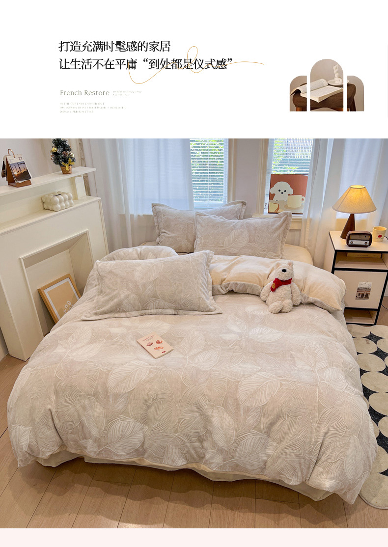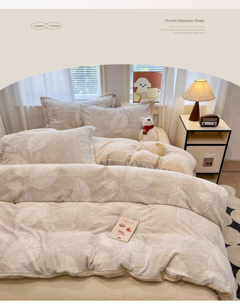 (总)慕尚家纺 2025新款磨毛提花双层纱四件套,慕叶粉,慕叶灰,清雅灰,清雅咖,清雅绿,森木粉,森木灰,森木绿,叶韵灰,叶韵咖,叶韵绿