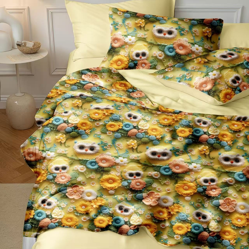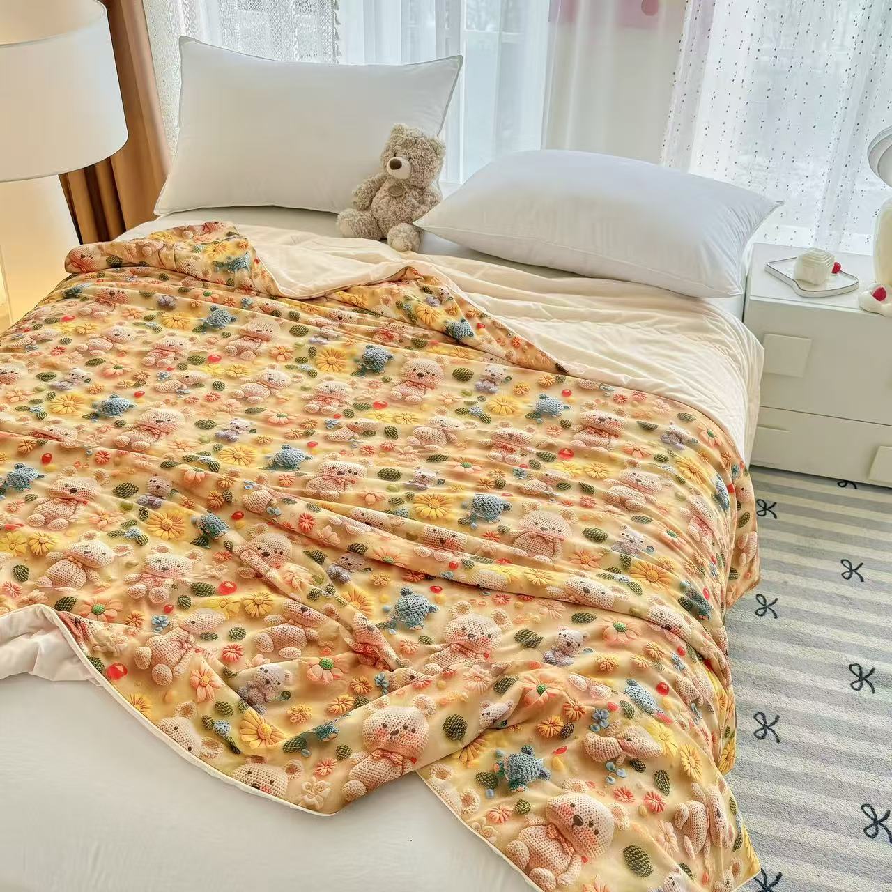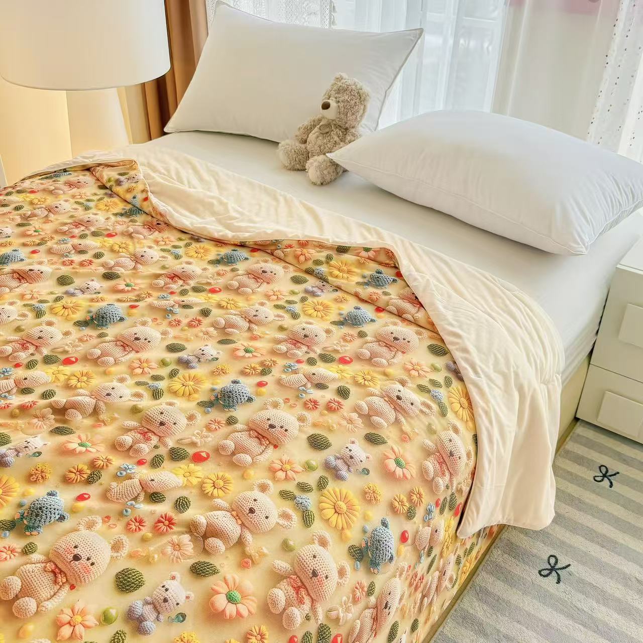 梵克保罗 2025新款面料仿锦氨凉感5D数码浮雕夏被四件套量大可谈 5D毛线熊