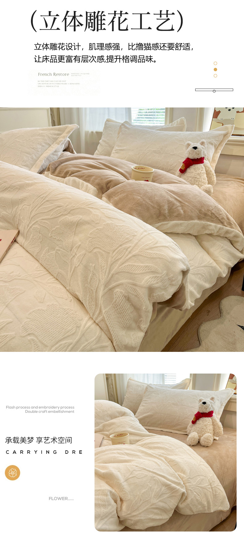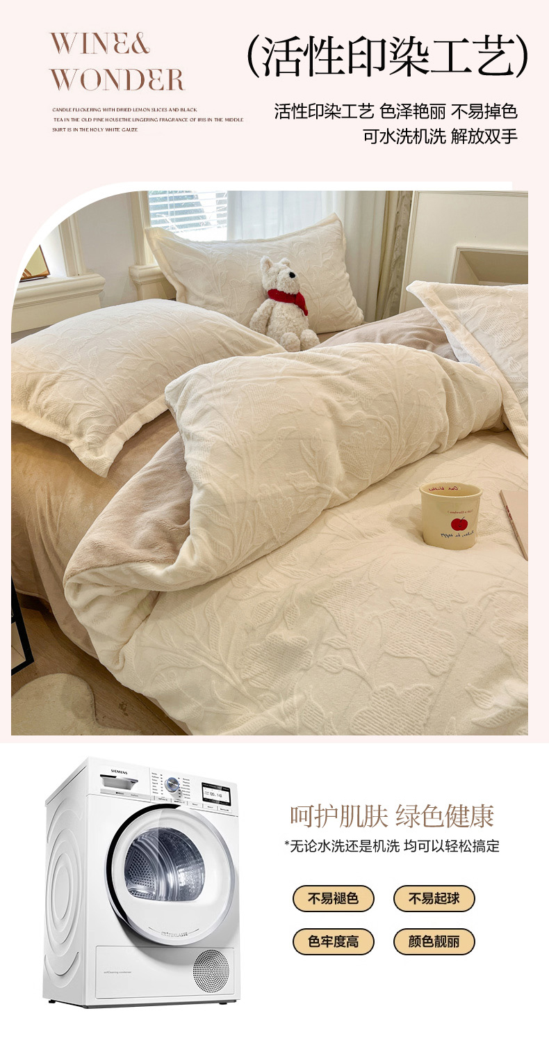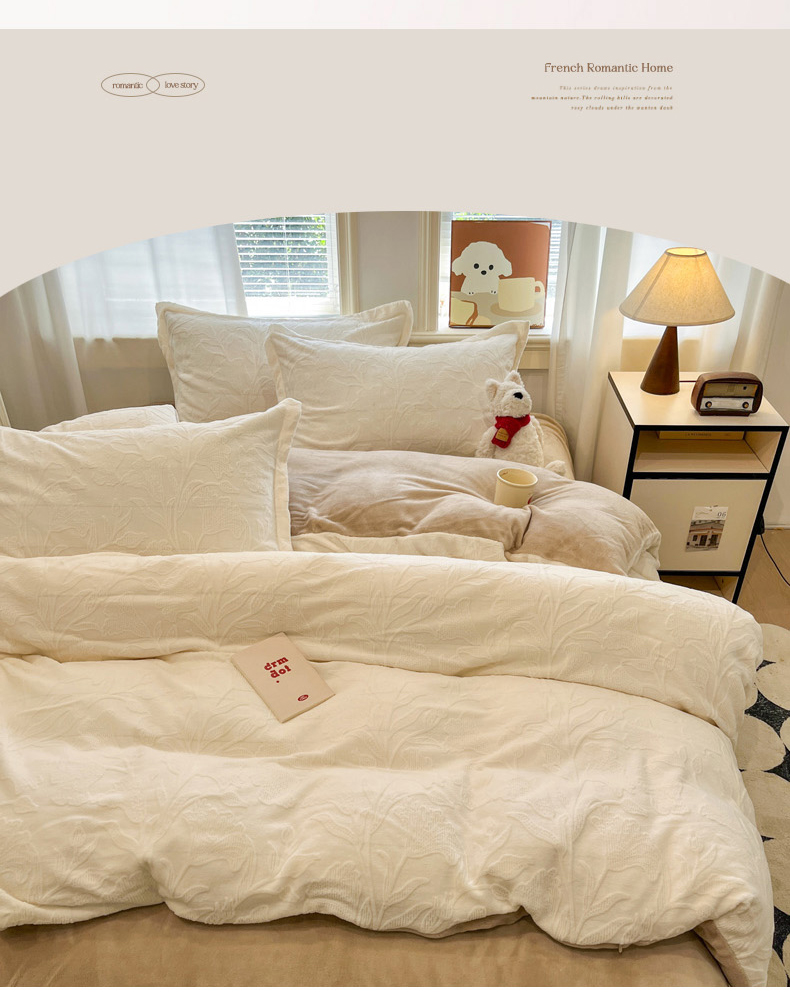 当前位置: 91家纺网 > 商品网购 > 床品套件 > 四件套 > 牛奶绒四件套 > 慕尚家纺 2025新款双色立体雕花牛奶绒四件套 茉莉花