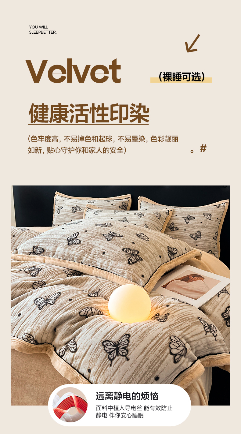 商品名称:金麦家纺 2025新款雕花牛奶绒工艺蝴蝶款四件套 蝴蝶-咖