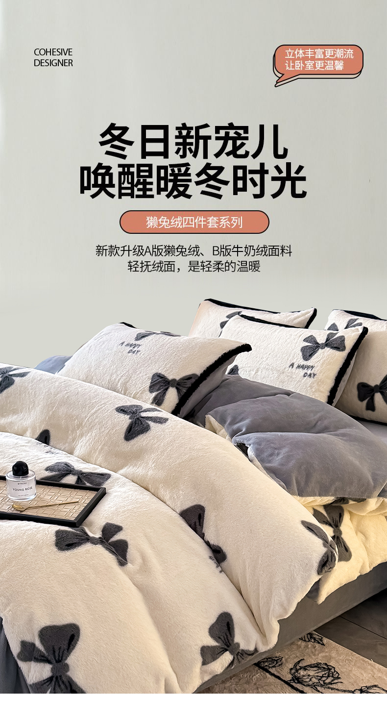 当前位置: 91家纺网 > 商品网购 > 床品套件 > 四件套 > 牛奶绒四件套 > KA家纺 2025新款秋冬兔毛边工艺款兔毛牛奶绒四件套 洛可可