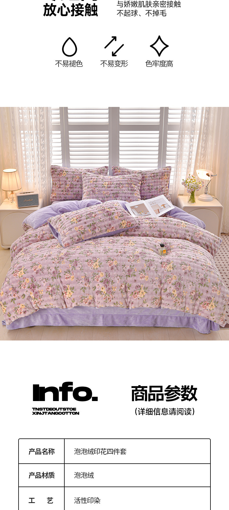商品名称:(总)苏迪网销供货 2025新款牛奶绒加厚高克重A类兔毛牛奶泡泡绒四件套