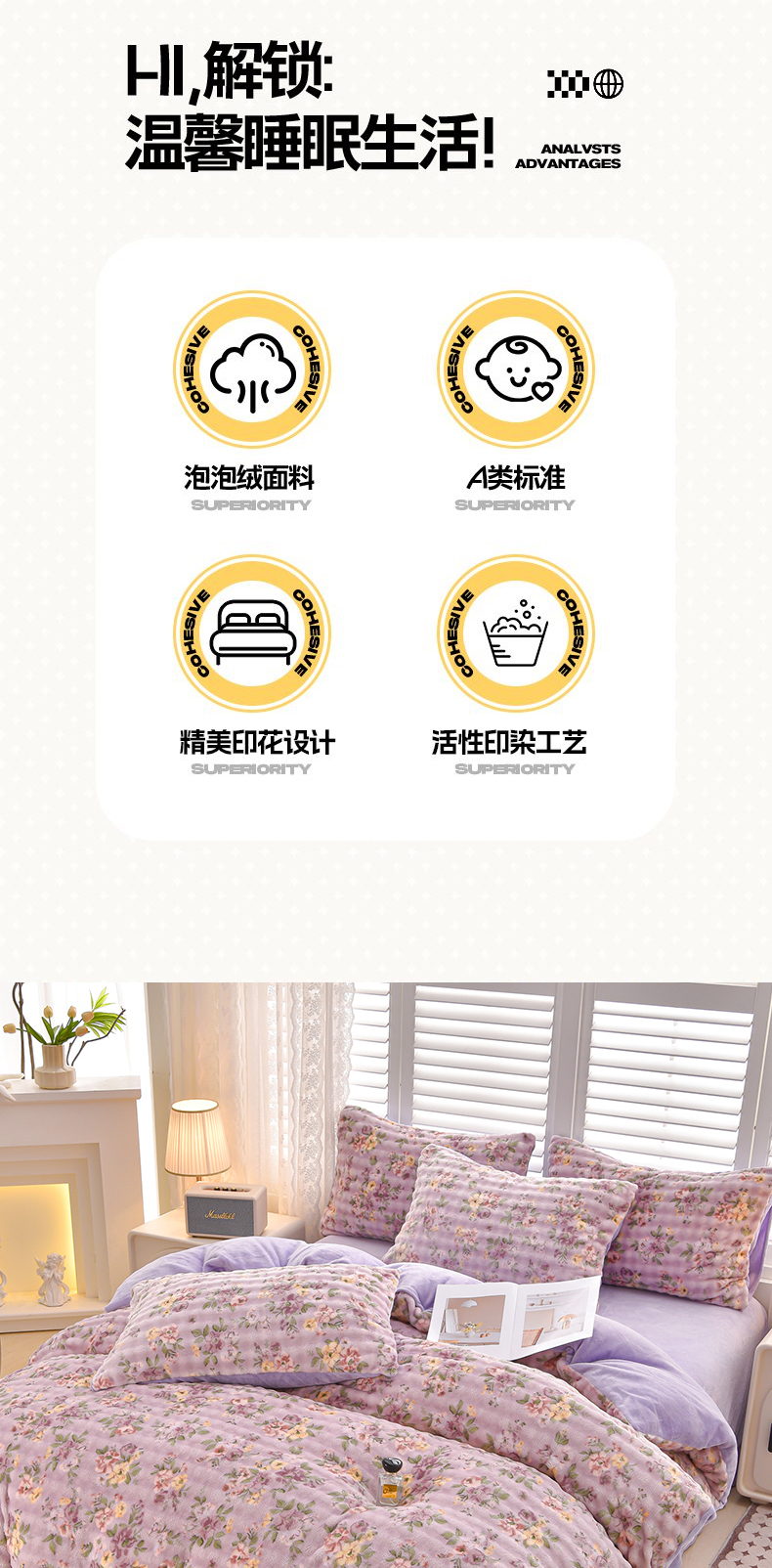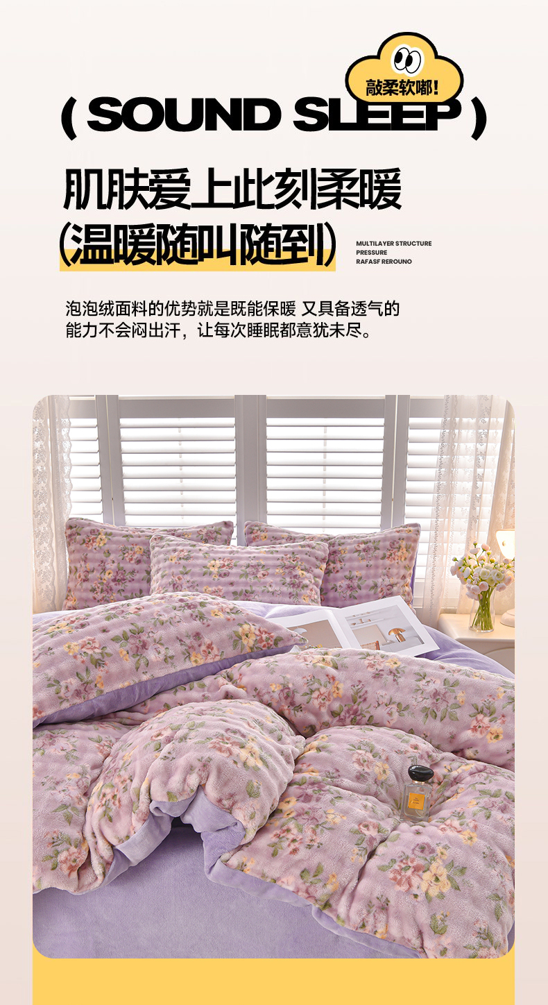 (总)苏迪网销供货 2025新款牛奶绒加厚高克重A类兔毛牛奶泡泡绒四件套