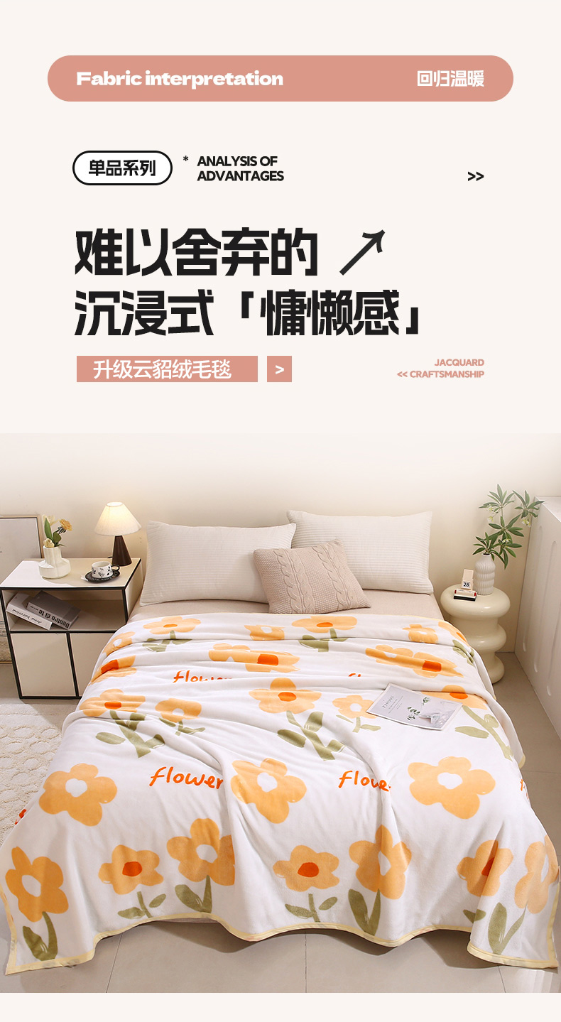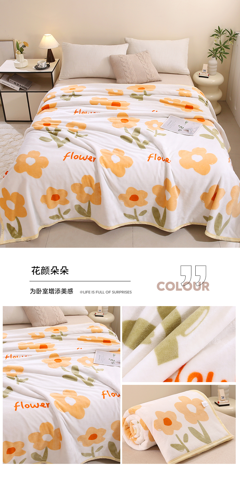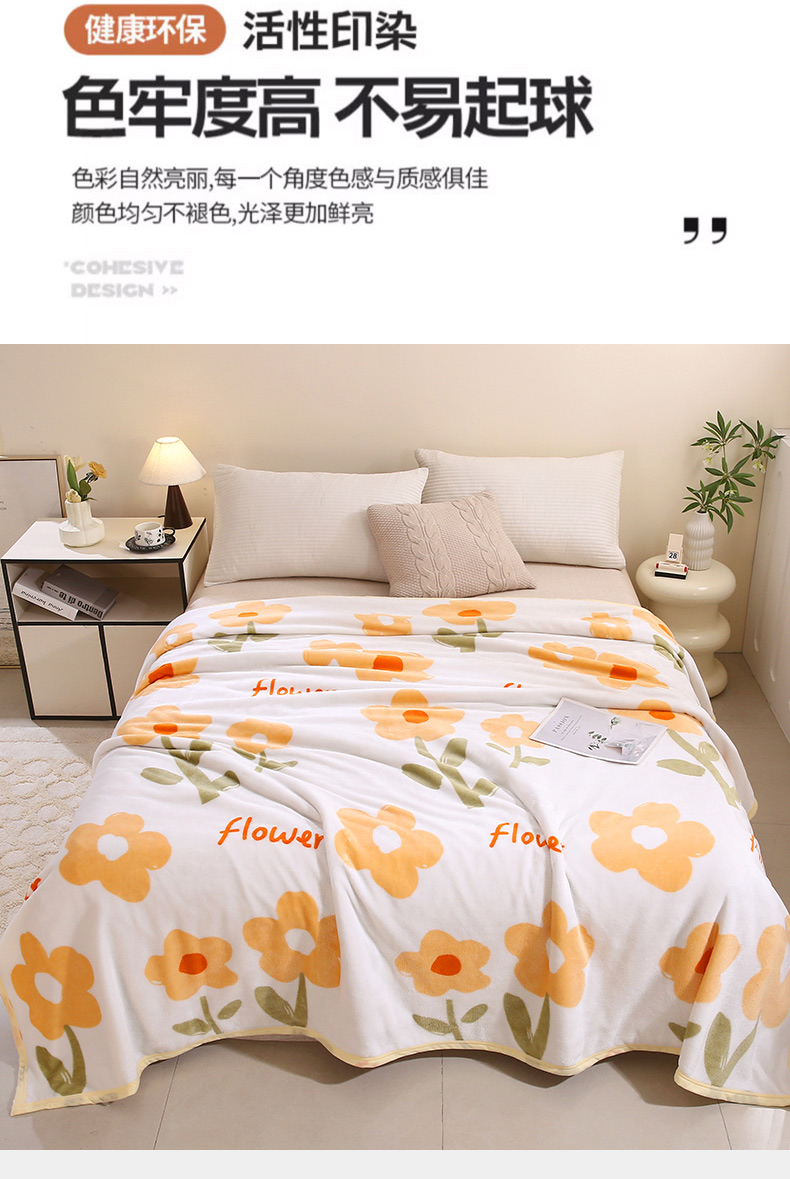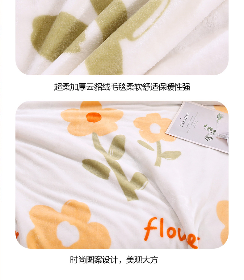 商品名称:爱派 2025年新款230g印花牛奶绒卷边毛毯盖坦毯子 花颜朵朵