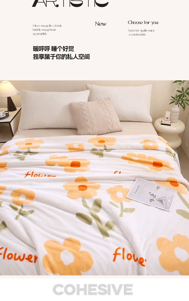 (总)爱派 2025年新款230g印花牛奶绒卷边毛毯盖坦毯子,淡香入梦,花颜朵朵,花枝曼妙,名门世家,艺术构想