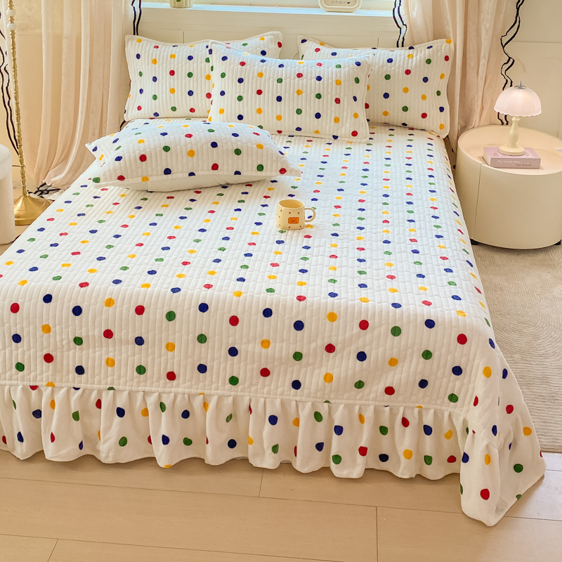 尚美 2025新款豆豆绒牛奶绒大花边床盖四件套-系列2(床盖花边随机) 彩色波点