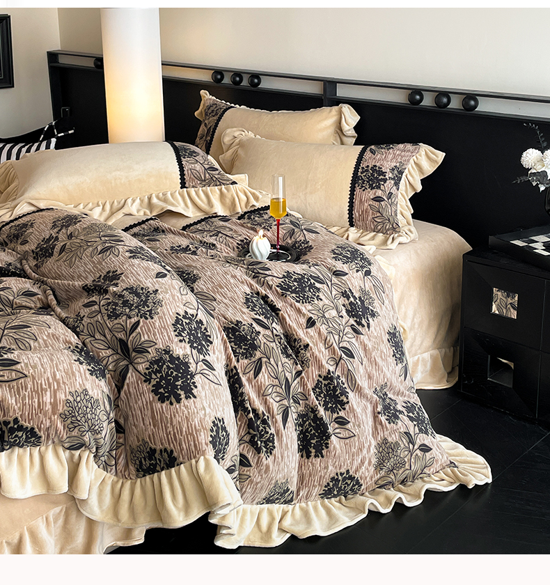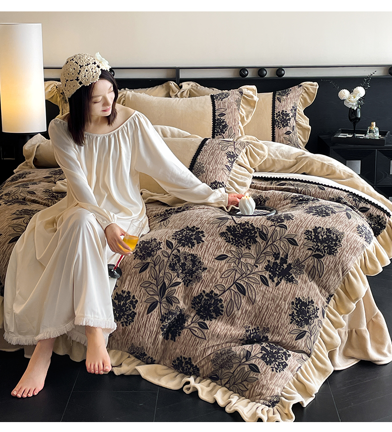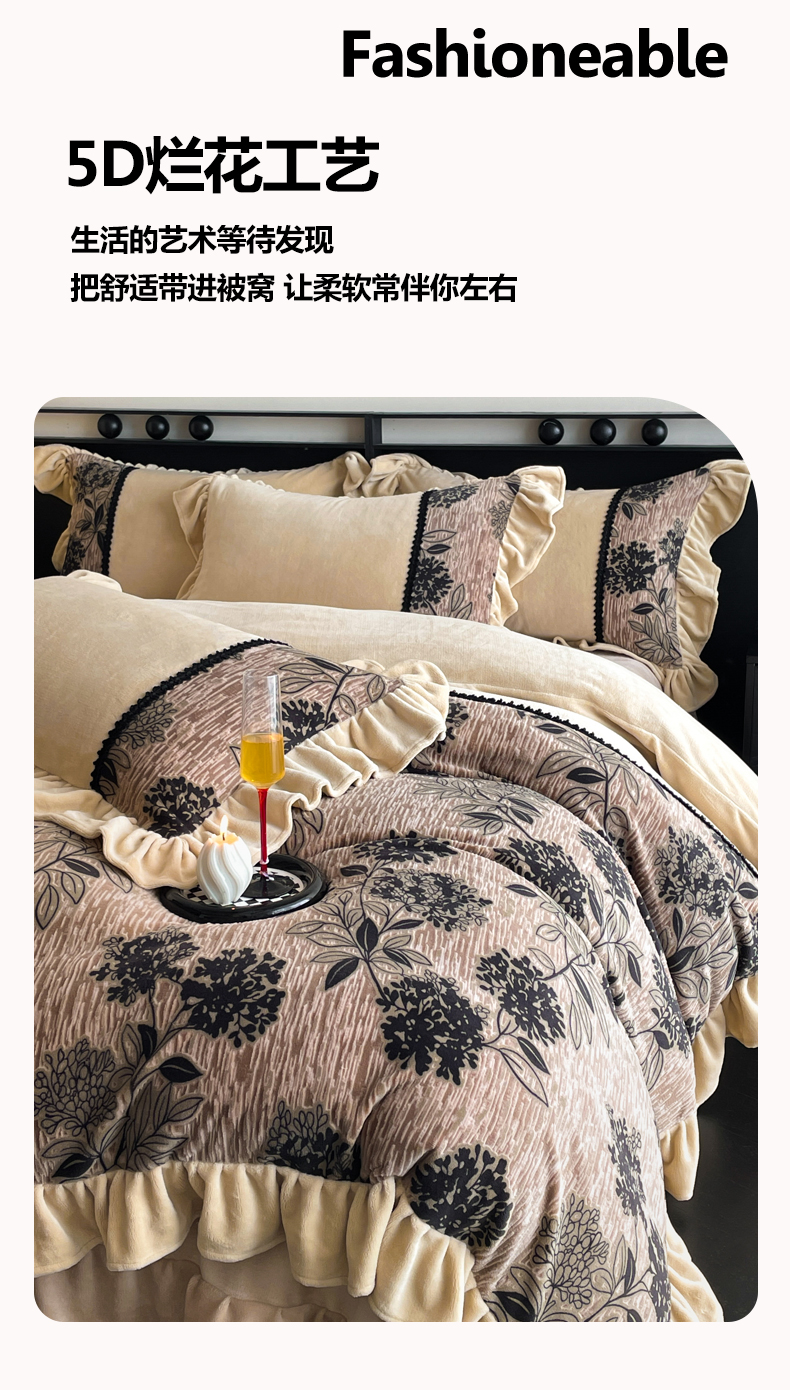 商品名称:慕木家纺 2025新款A类高克重高端雕花烂花AB版工艺款拼接四件套绮梦系列(直播热款) 花蔓韵