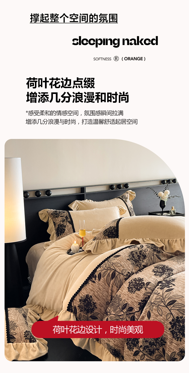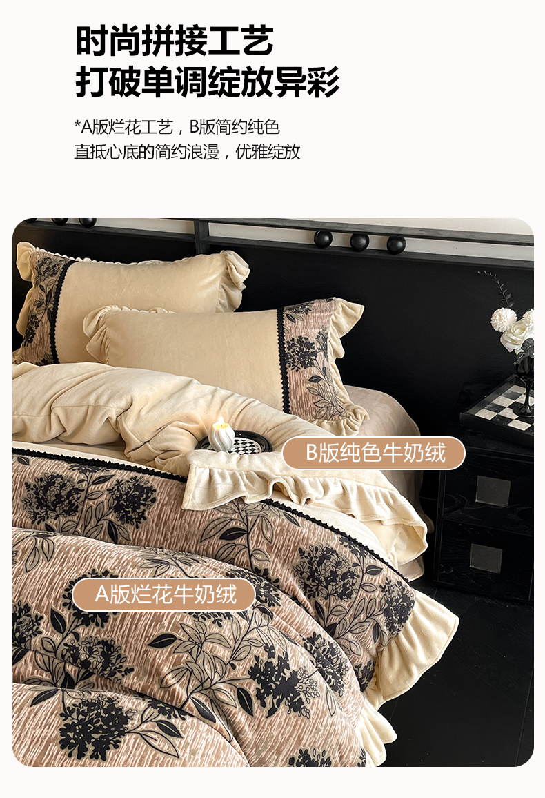 (总)慕木家纺 2025新款高克重简约无印风牛奶绒双拼四件套,宾利蓝+浅灰,米驼+奶茶咖,浅灰+米金,双拼套件-豆沙+灰