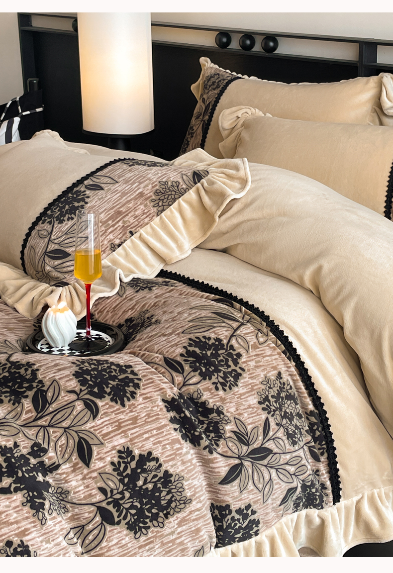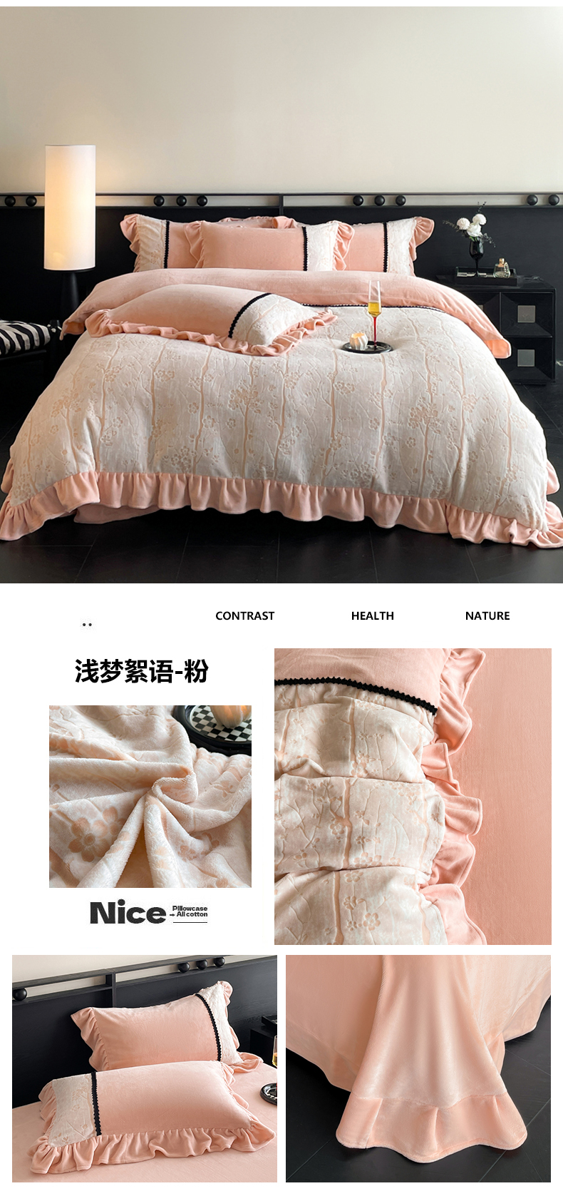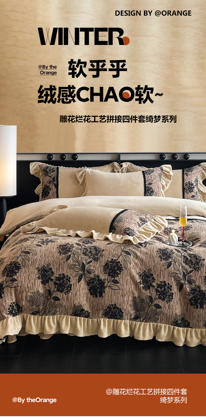 (总)慕木家纺 2025新款A类高克重高端雕花绒工艺款刺绣拼接四件套锦绣芳华系列(直播热款)提供买家秀,锦绣芳华-月岩灰,锦绣芳华-卡其,锦绣芳华-玉粉