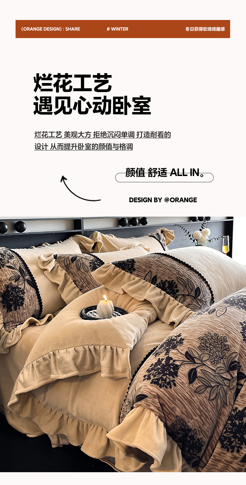 慕木家纺 2025新款A类高克重高端雕花烂花AB版工艺款拼接四件套绮梦系列(直播热款) 花蔓韵