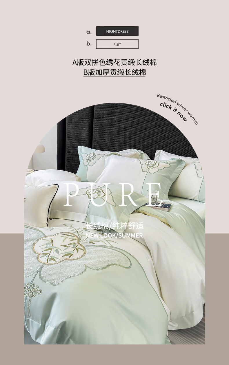 (总)丞音家纺 2025新款秋冬新款轻奢超细旦长绒棉细磨毛超柔加厚刺绣四件套纯棉全棉床单绣花床品床笠-艾薇尔系列,艾薇尔-木槿紫,艾薇尔-桃花粉,艾薇尔-心冰绿,艾薇尔-祖玛蓝
