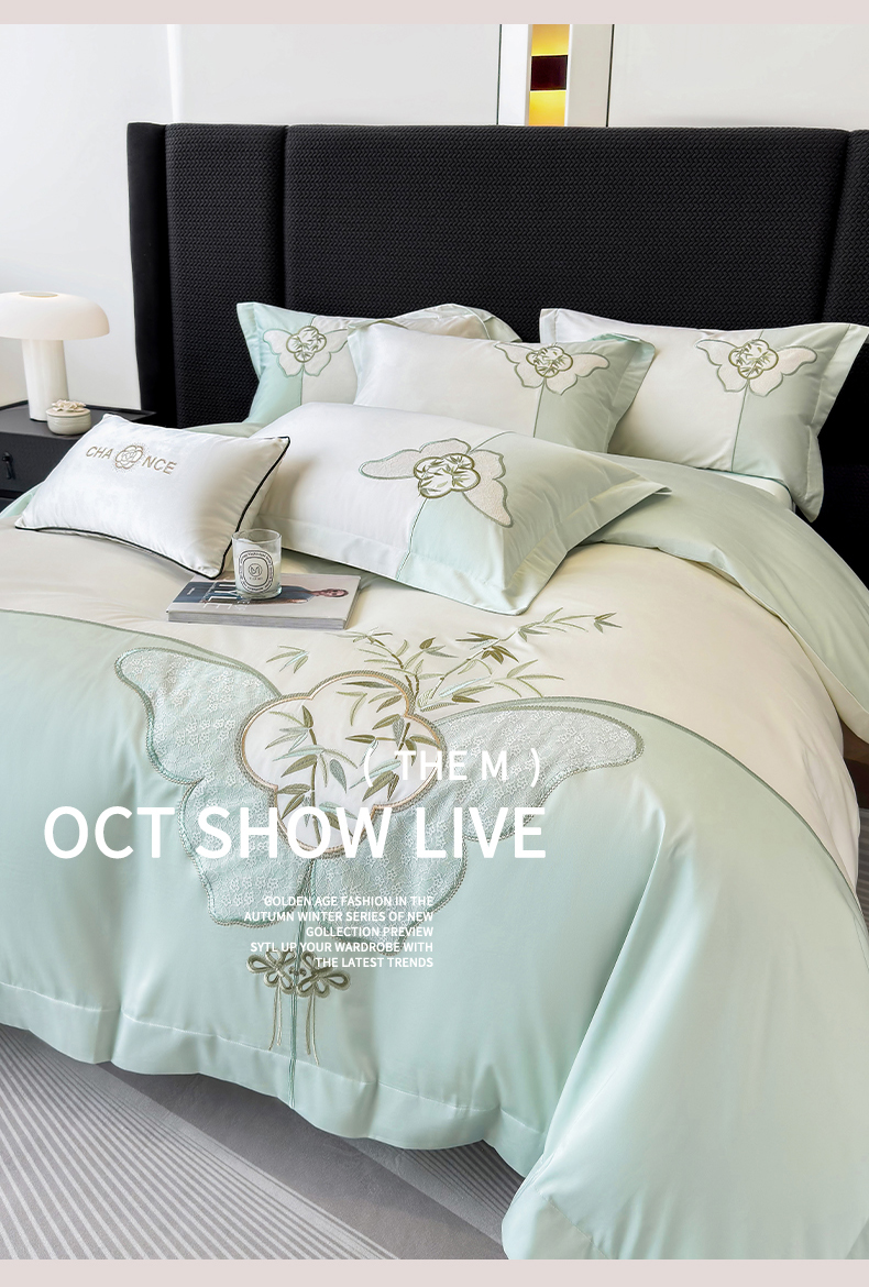 (总)丞音家纺 2025新款高档包装A类母婴级双面全棉蝴蝶刺绣纯棉长绒棉绣花四件套,梦蝶-抹茶绿,梦蝶-冰莓粉,梦蝶-时尚灰,梦蝶-雾霾蓝