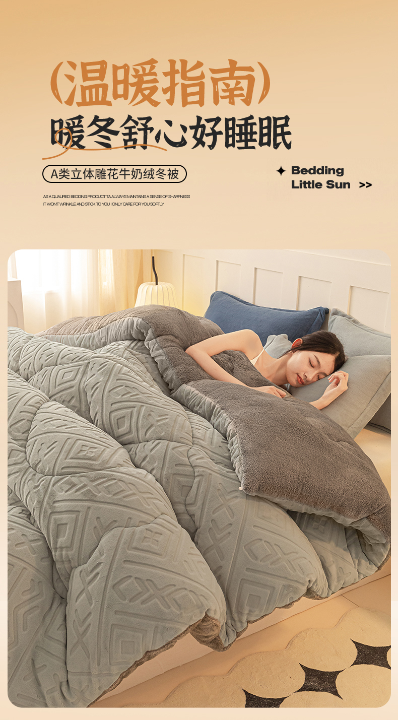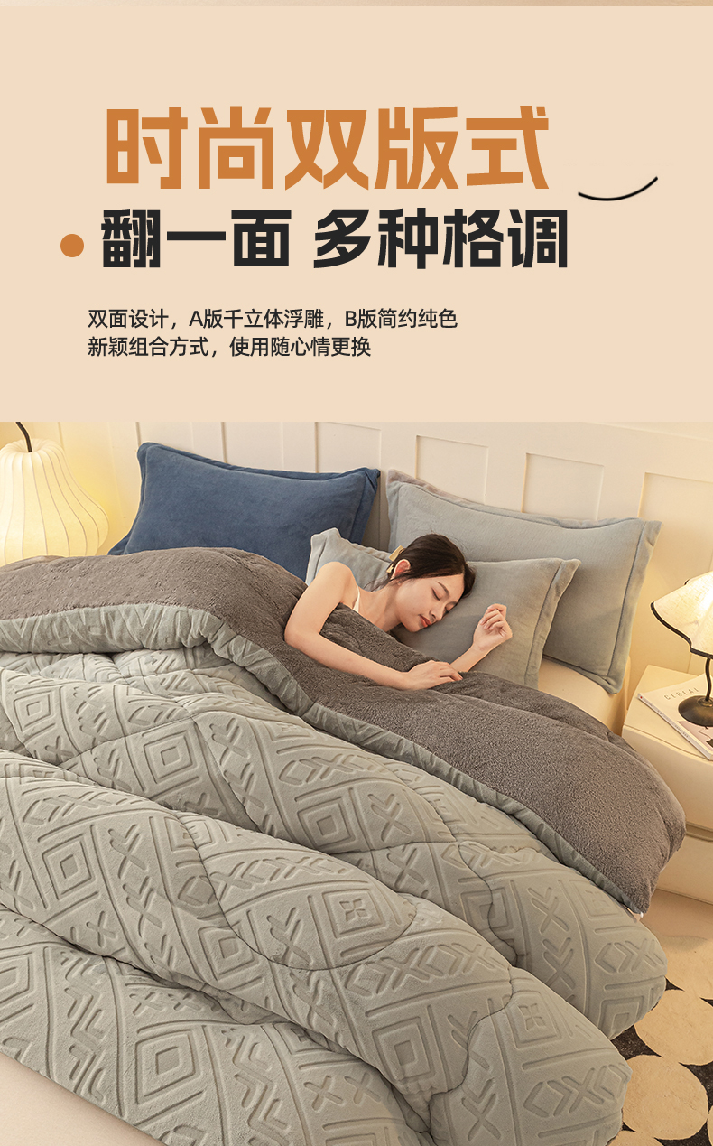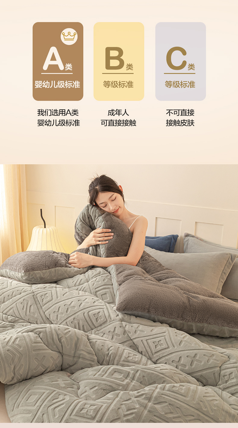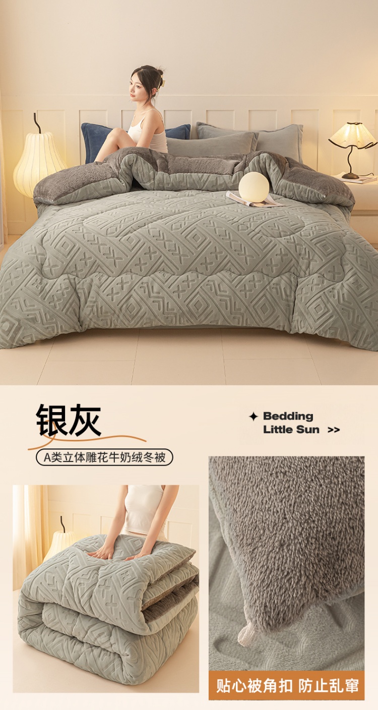 • 91家纺网 家纺一手货源 找家纺 美澳家纺 2025新款5D雕花绒牛奶绒宝宝绒加厚保暖纯色冬被被子被芯 银灰