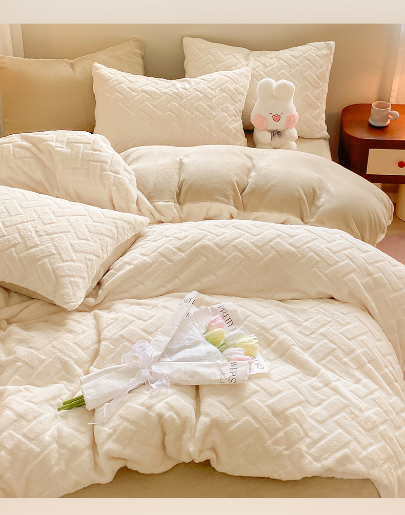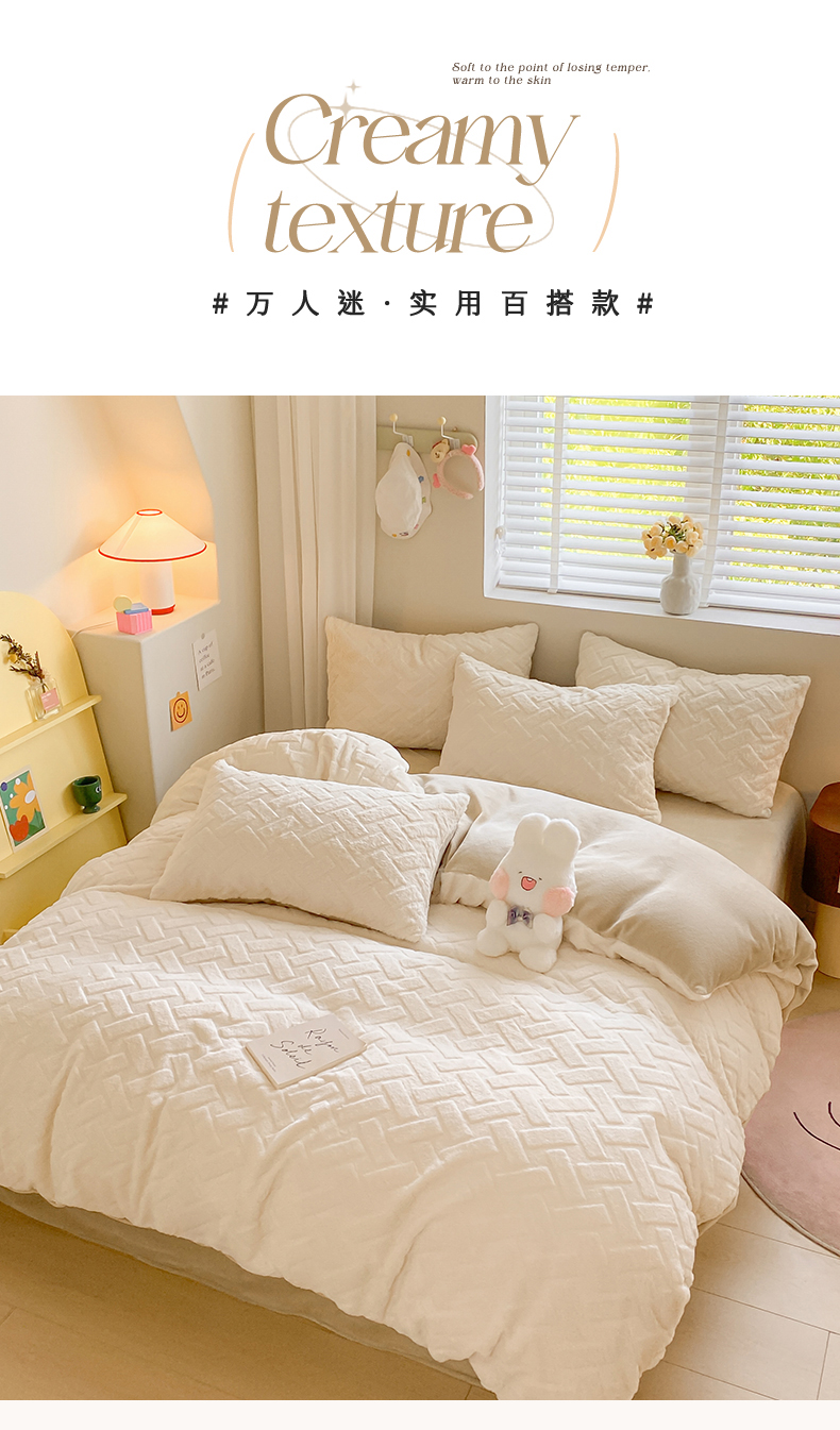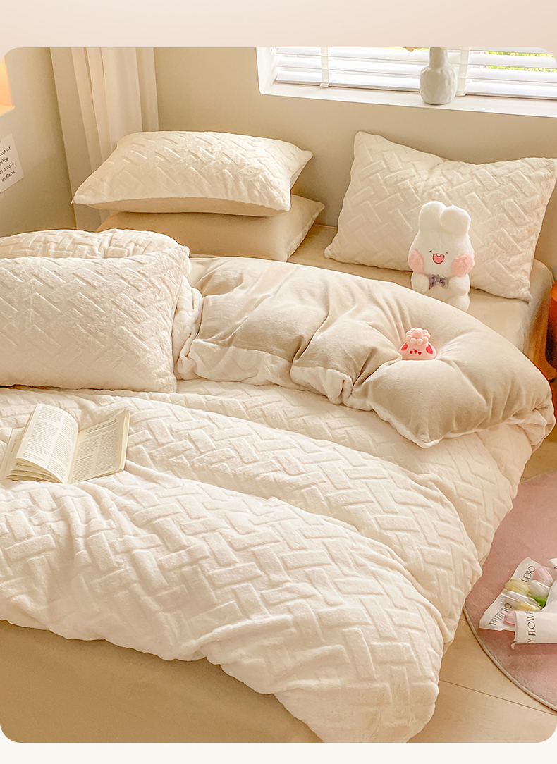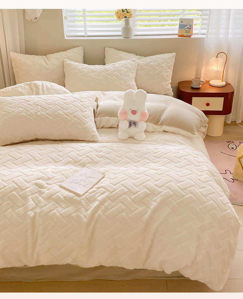 当前位置: 91家纺网 > 商品网购 > 床品套件 > 四件套 > 牛奶绒四件套 > 名兮家居 2025新款高克重立体仿兔绒牛奶绒四件套 几何生活