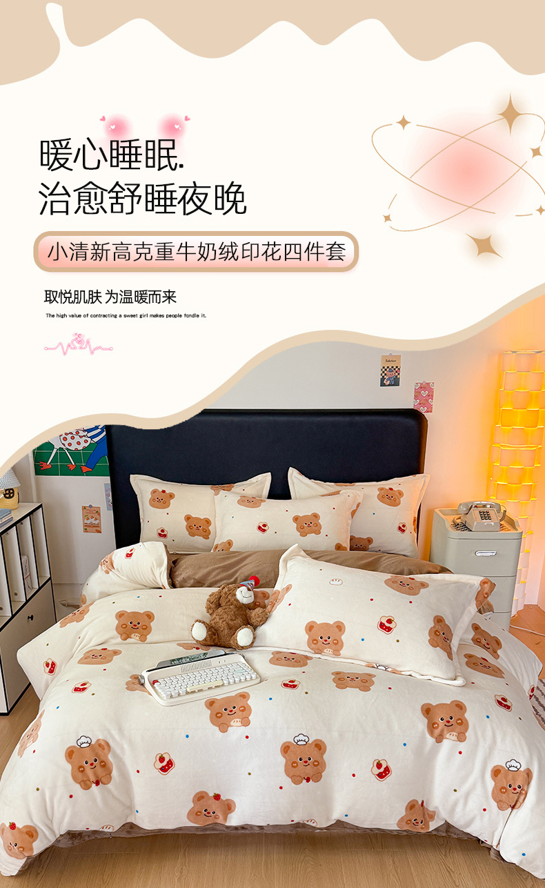 当前位置: 91家纺网 > 商品网购 > 床品套件 > 四件套 > 牛奶绒四件套 > 艾特你 2025新款小清新高克重牛奶绒印花四件套 卡贝拉
