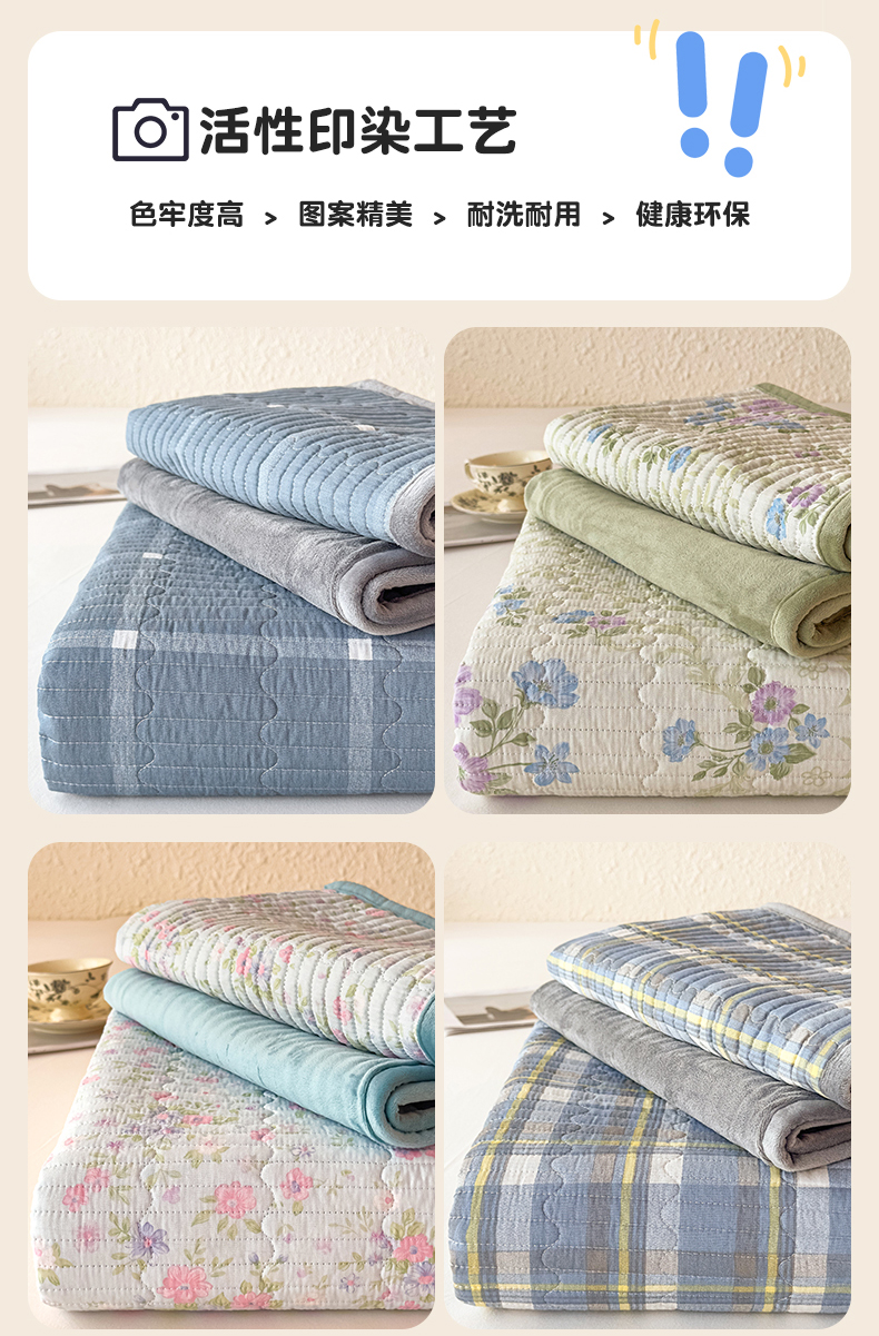 • 91家纺网 家纺一手货源 找家纺 恒爱家纺 2025新款全棉宝宝绒双拼床盖三件套 蓝香芥