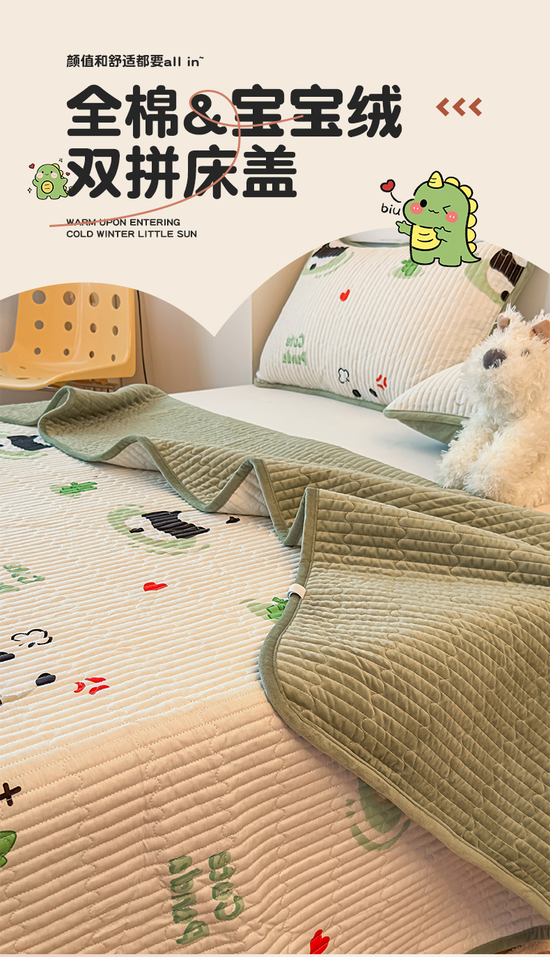 (总)恒爱家纺 2025新款全棉宝宝绒双拼床盖三件套,贝肯熊,春兰,呆萌恐龙,繁星点点,海棠兔,好朋友,花容月貌-蓝,花容月貌-绿,欢乐熊,灰小格,火树琪花,娇媚,精彩人生,拉布布,蓝灰大格,蓝灰中格,蓝香芥,蓝雪花,美少女,萌宠卫士,莫尼-蓝,莫尼-玉,汽车拼图,情人草,韶华,香远益清,熊猫贝贝,萱草花,艳丽动人,紫菀花