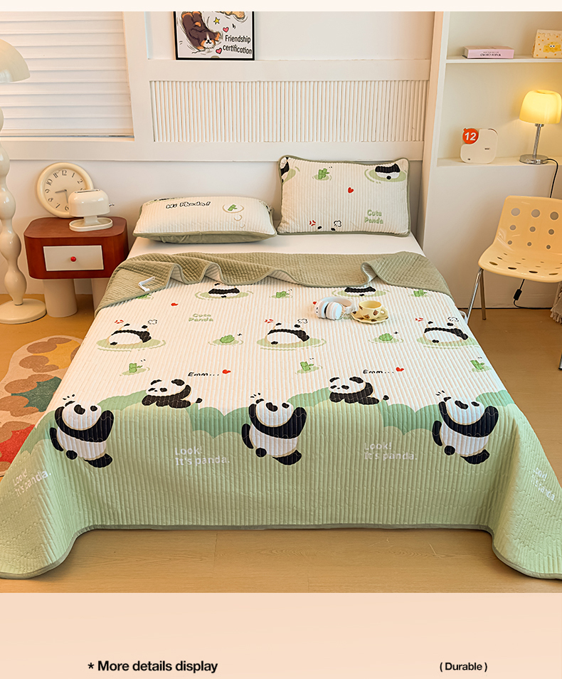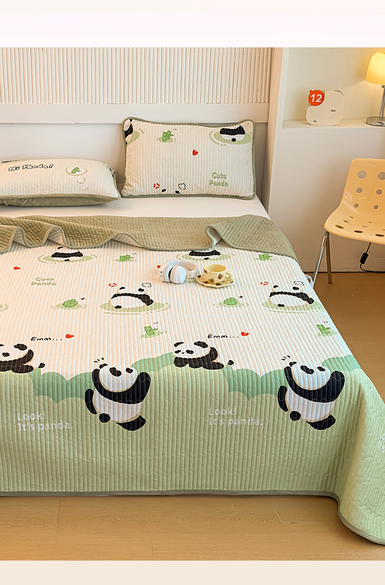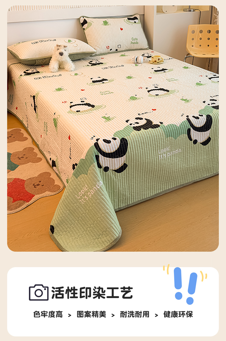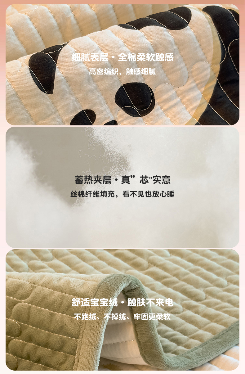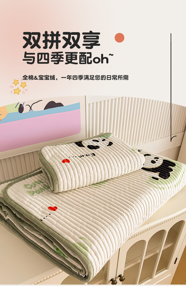 • 91家纺网 家纺一手货源 找家纺 恒爱家纺 2025新款全棉宝宝绒双拼床盖三件套 熊猫贝贝