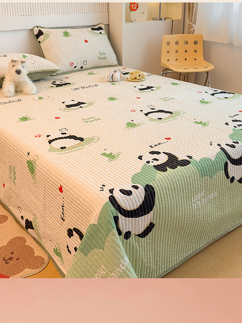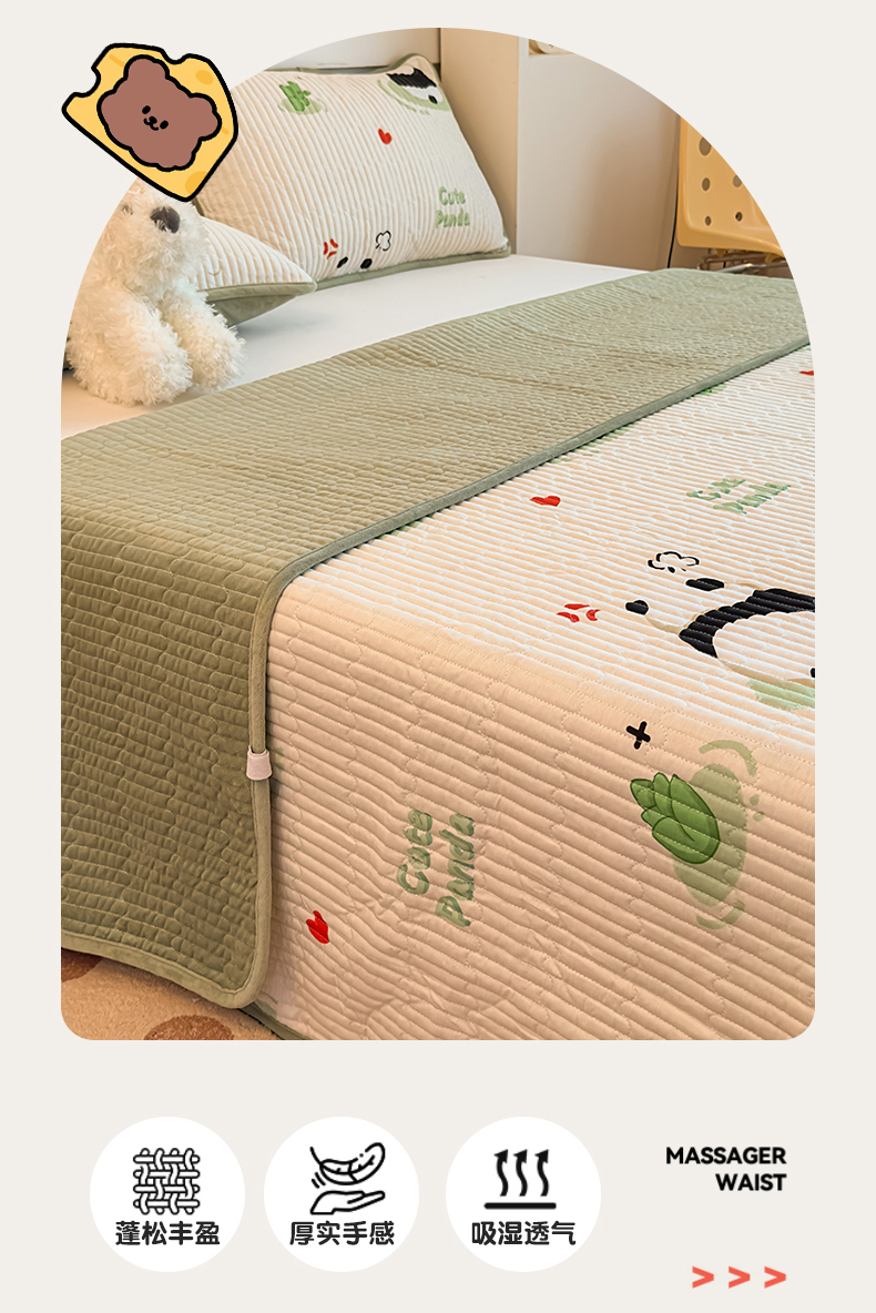 恒爱家纺 2025新款全棉宝宝绒双拼床盖三件套 熊猫贝贝