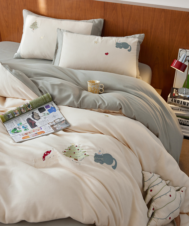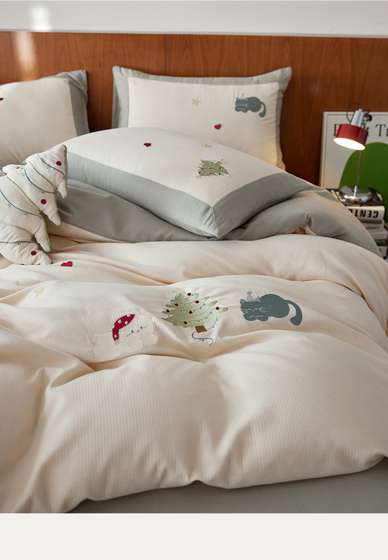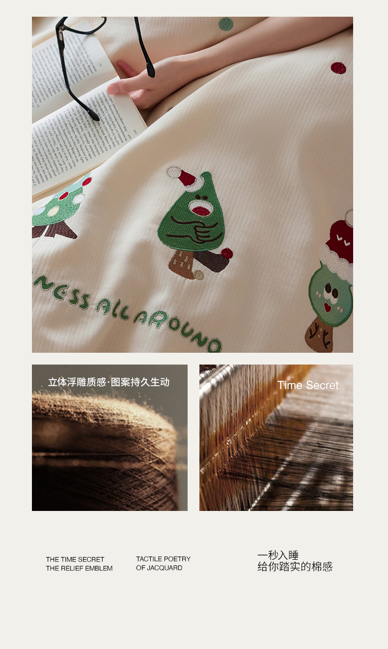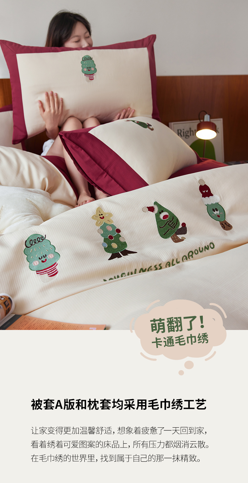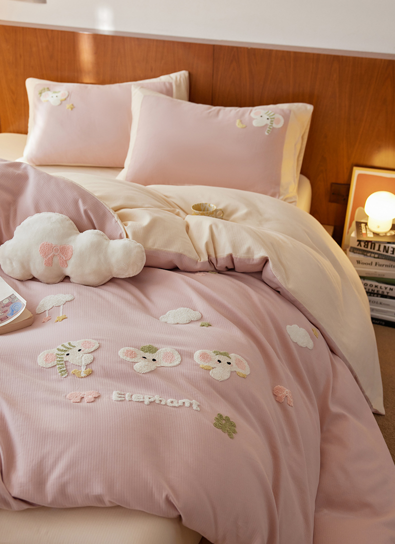 (总)风向标家纺 2025新款透气软织提花磨毛卡通毛巾绣四件套-风格一