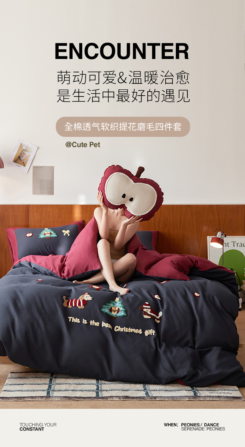 (总)风向标家纺 2025新款A类全消光暖呢绒毛巾绣四件套-减龄家宠系列(风格三),海魂衫小狗-蓝白,海魂衫小狗-蓝咖,荔枝熊猫-粉,荔枝熊猫-红,躺平猫-淡紫,躺平猫-奶茶,炸毛小黑猫-灰绿,炸毛小黑猫-奶白,站队小泰迪