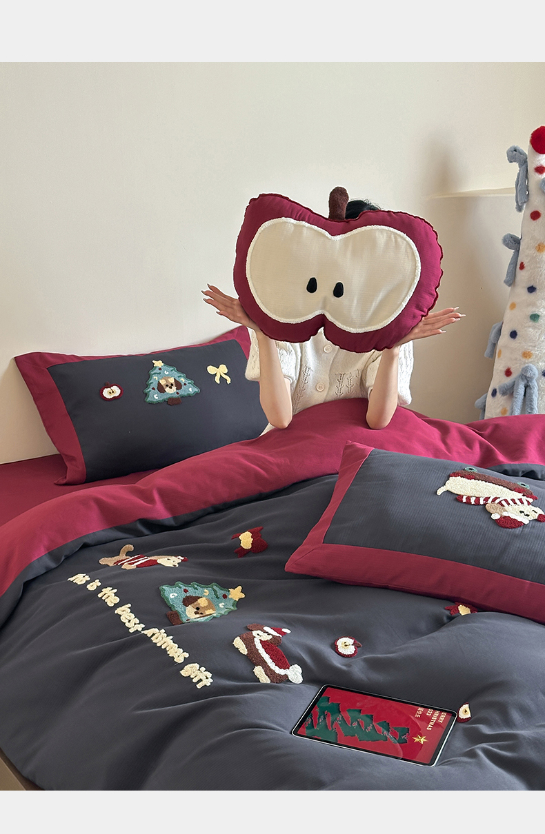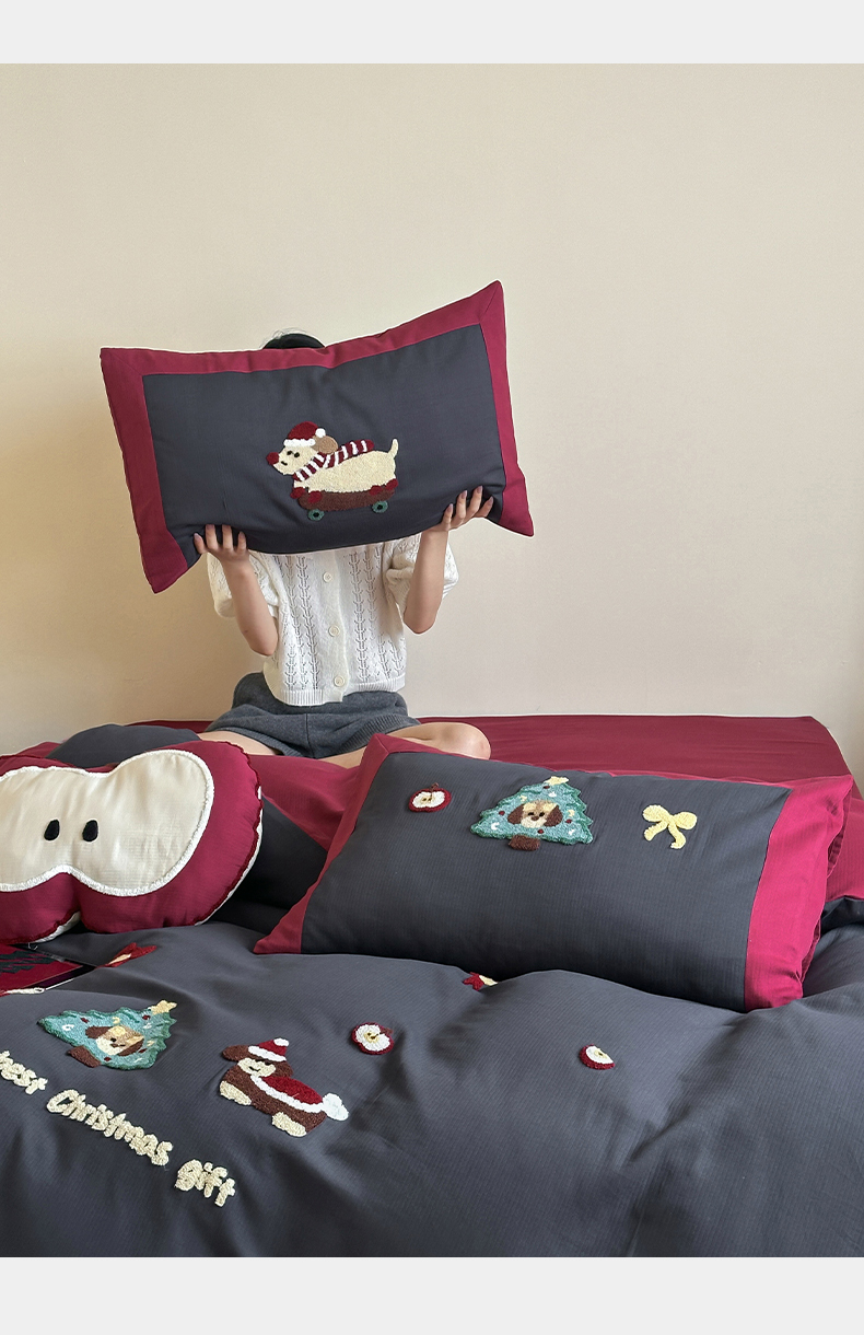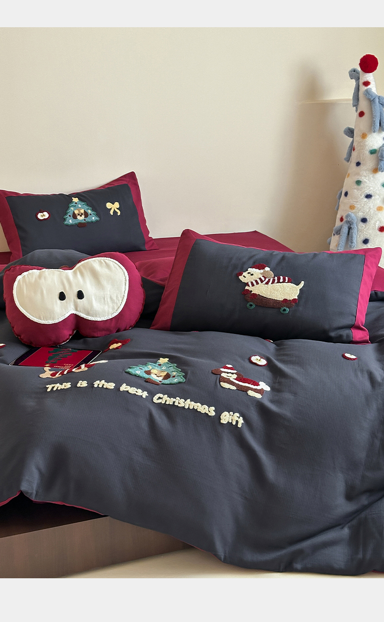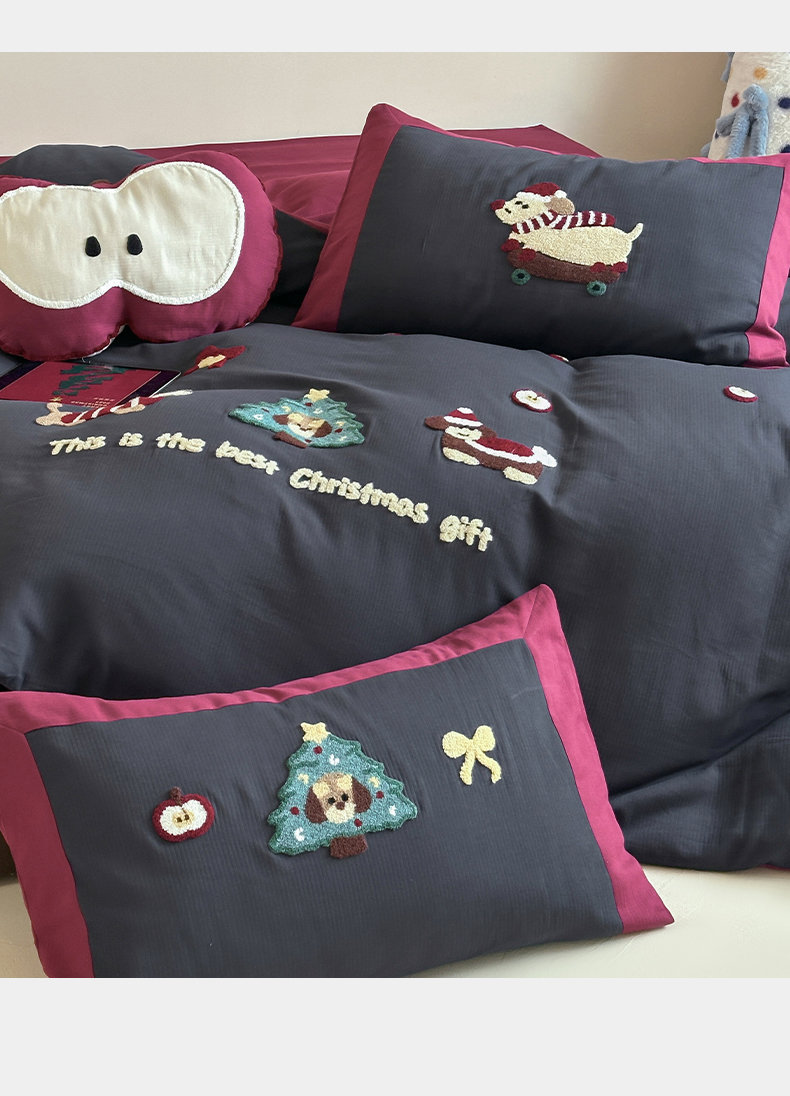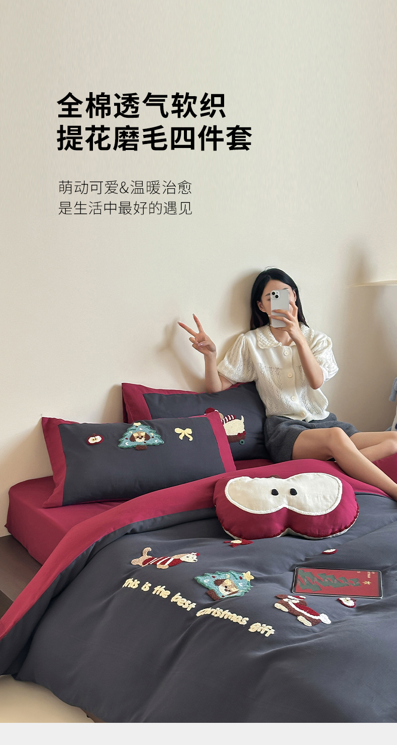 当前位置: 91家纺网 > 商品网购 > 床品套件 > 四件套 > 普通磨毛四件套 > 风向标家纺 2025新款透气软织提花磨毛卡通毛巾绣四件套-风格二 苹果狗-蓝