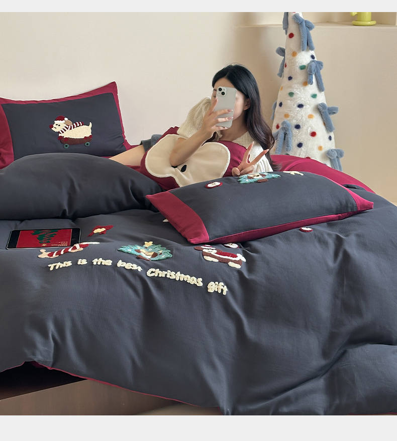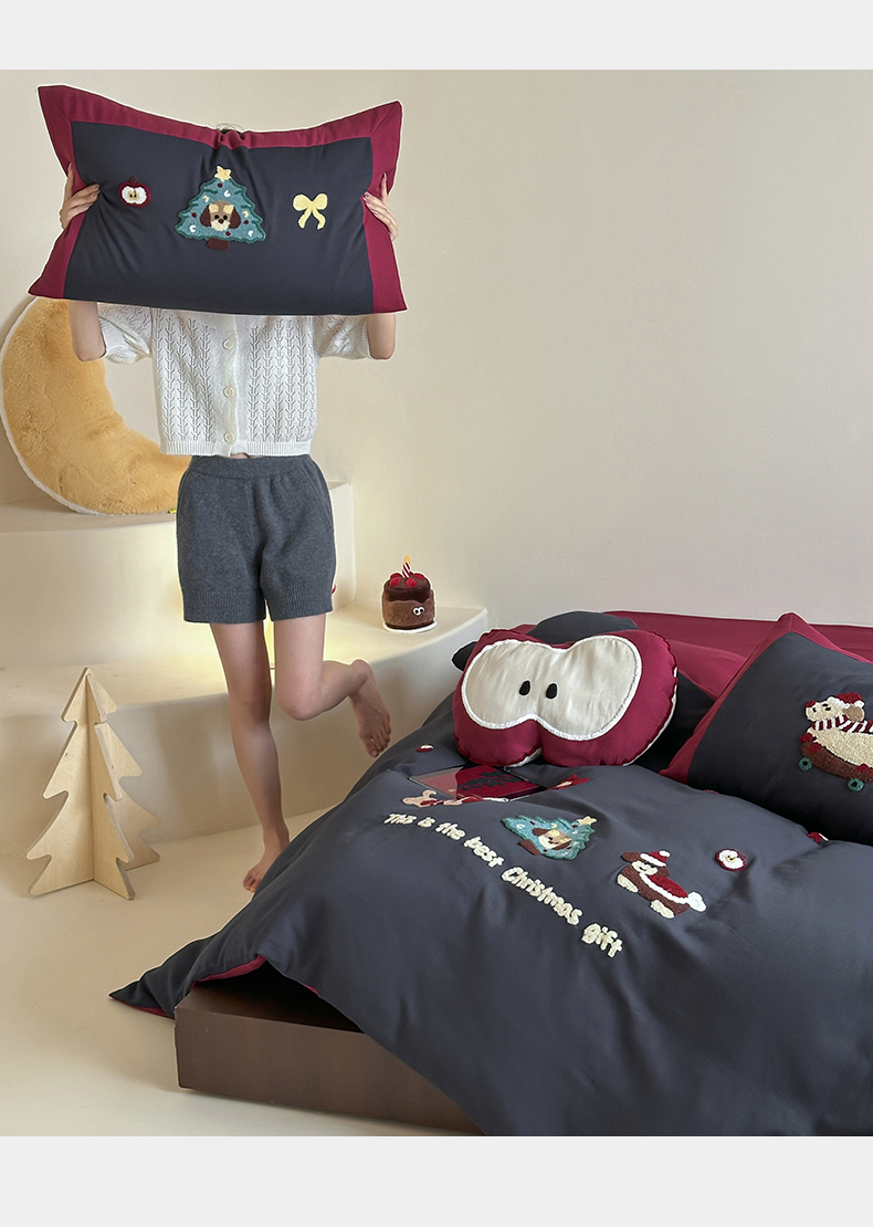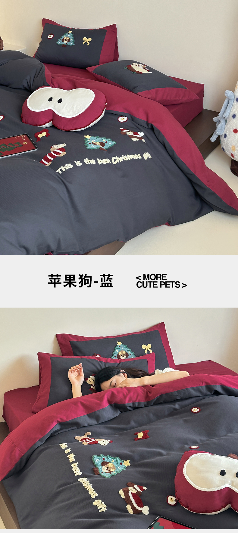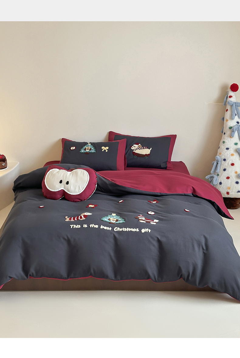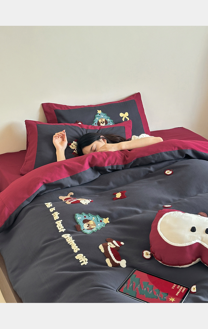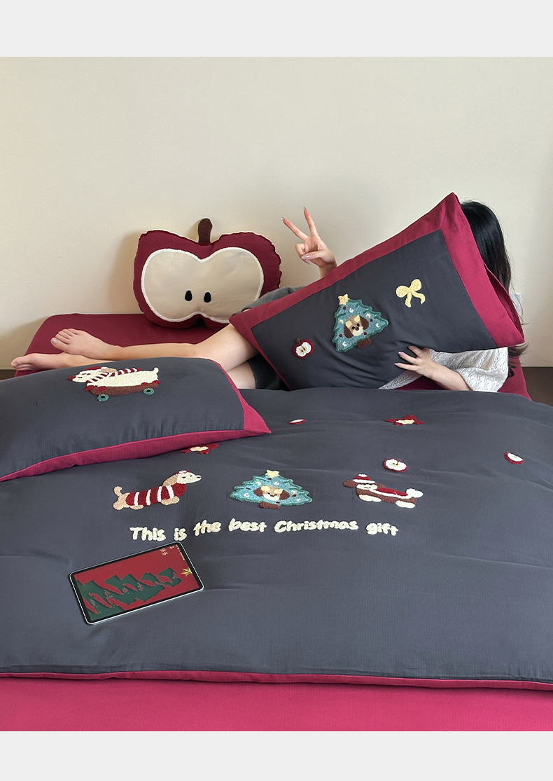 当前位置: 91家纺网 > 商品网购 > 床品套件 > 四件套 > 普通磨毛四件套 > 风向标家纺 2025新款透气软织提花磨毛卡通毛巾绣四件套-风格二 苹果狗-蓝