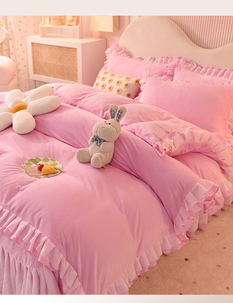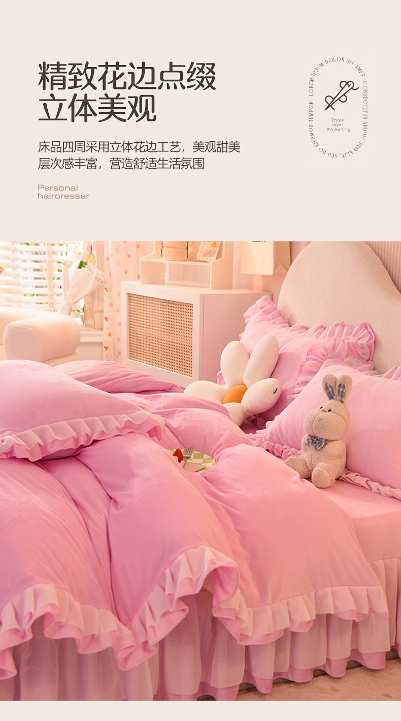 后庭寝室 2025新款韩式花边牛奶绒四件套-香香公主系列 香香公主-粉色