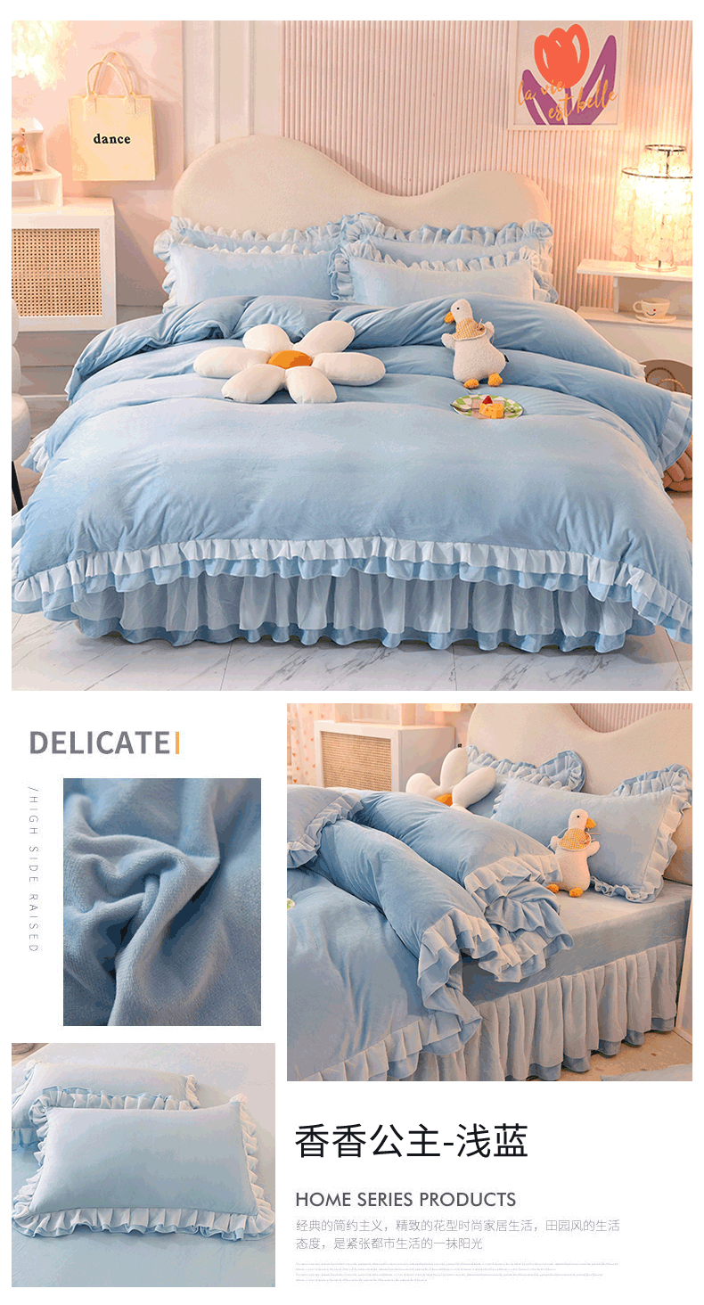 (总)后庭寝室 2025新款高克重牛奶绒公主风床裙四件套-甜心系列,甜心-粉玉,甜心-嫩黄,甜心-浅粉,甜心-浅蓝,甜心-浅紫,甜心-玉色
