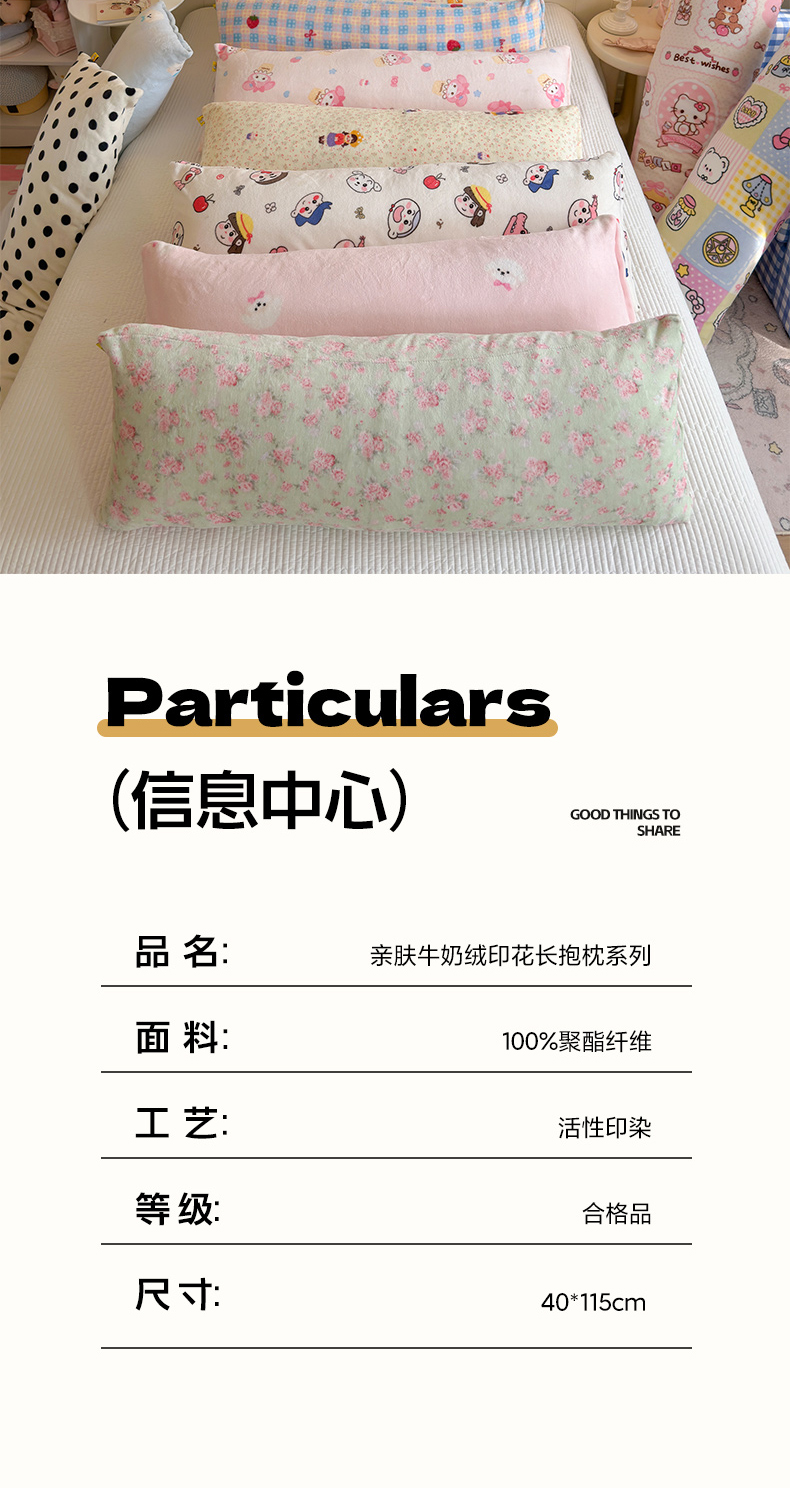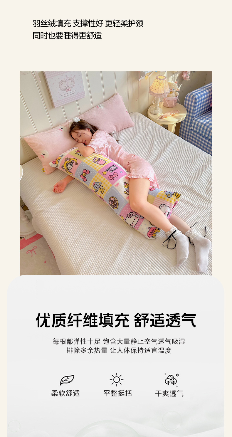 商品名称:罗亿家纺 2025新款牛奶绒长抱枕-助眠神器(小红书推荐) 暖fufu-小波点