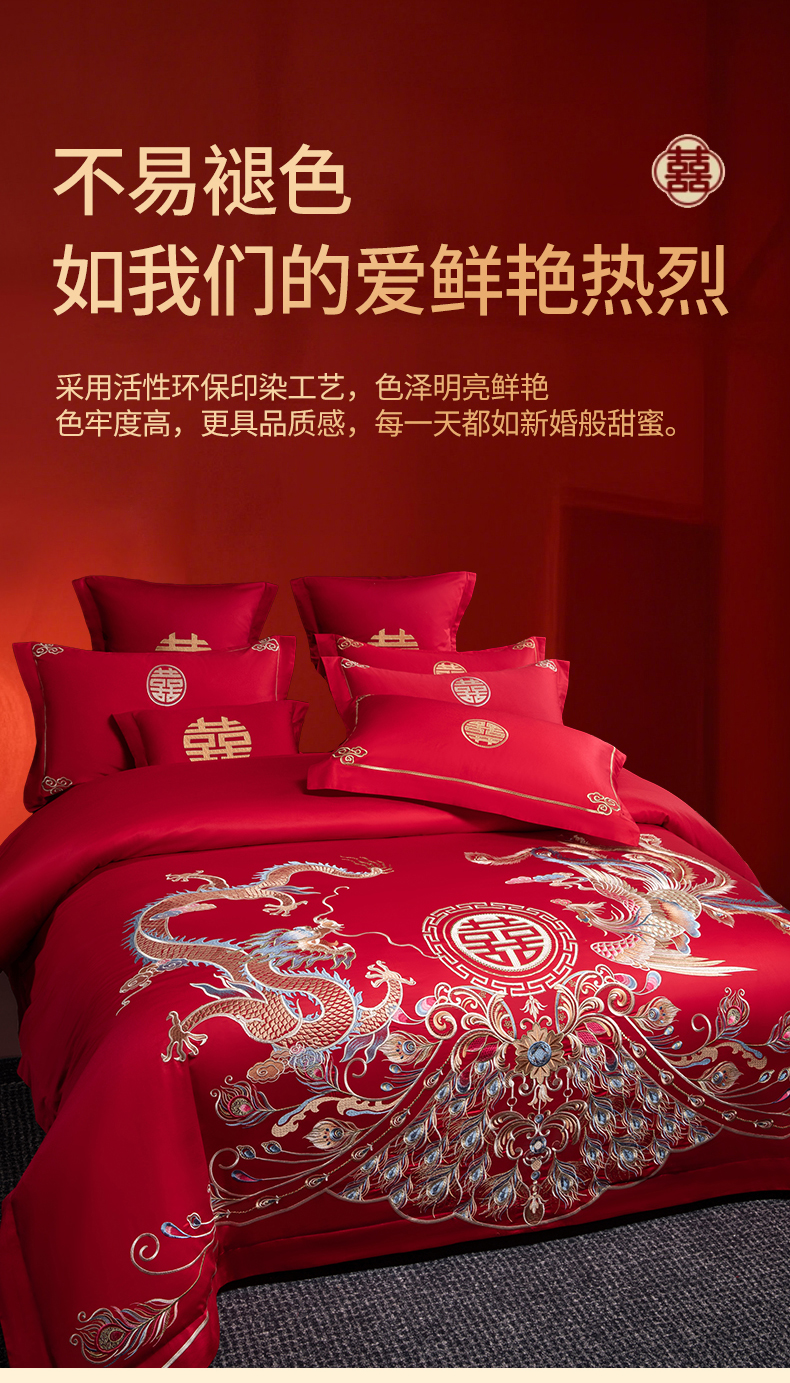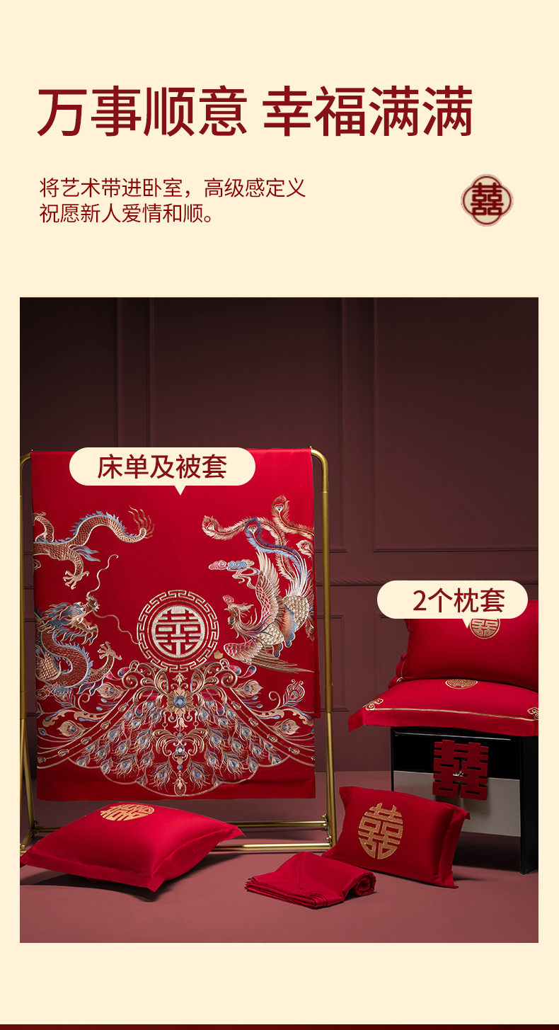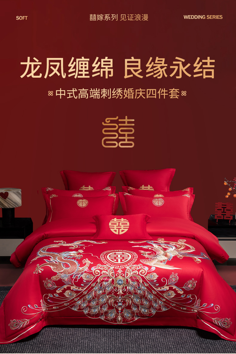 (总)欧乐蒂 2025冬季新品亲肤棉提花刺绣婚庆四件套,龙凤双喜,喜事花开