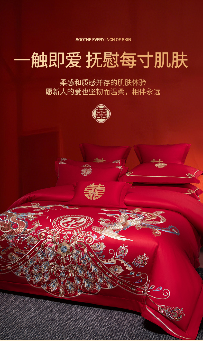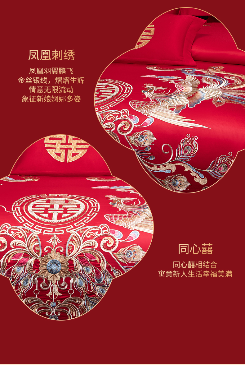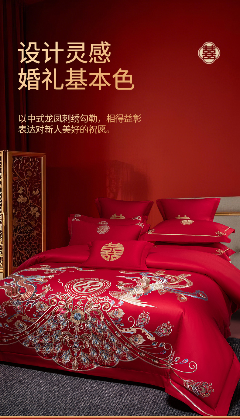 (总)欧乐蒂 2025冬季新品亲肤棉提花刺绣婚庆四件套,龙凤双喜,喜事花开