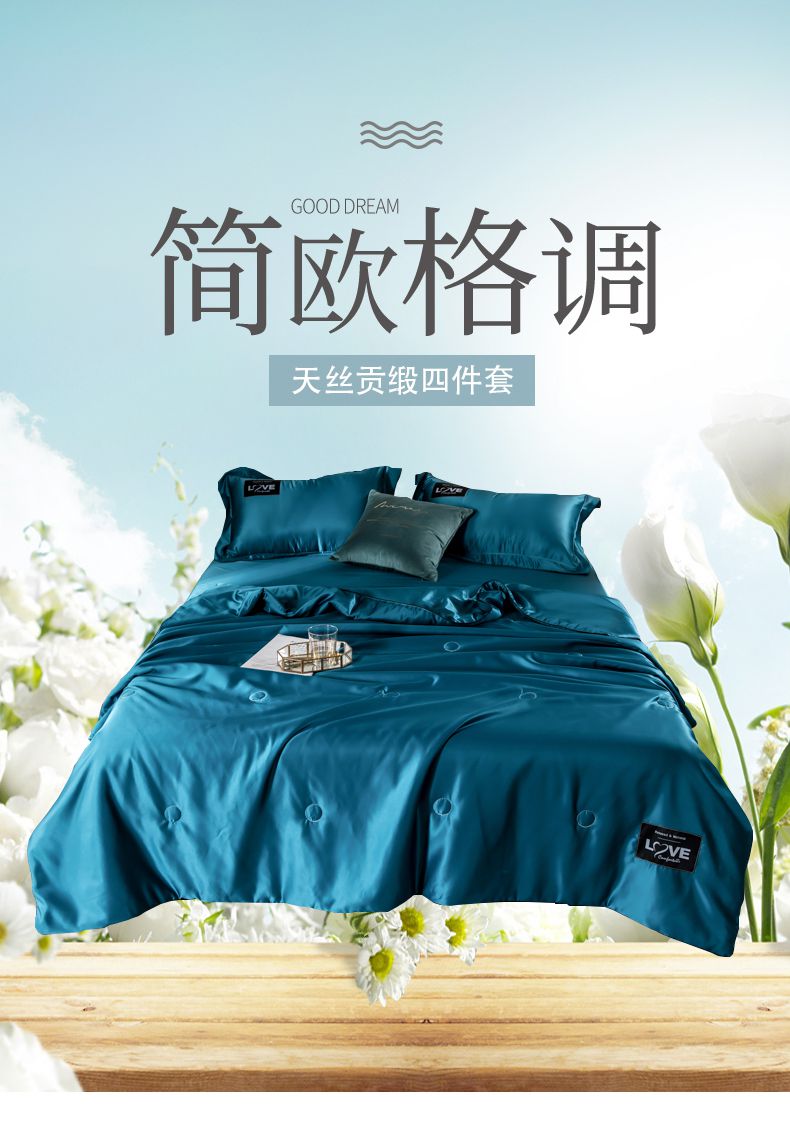 当前位置: 91家纺网 > 商品网购 > 床品套件 > 四件套 > 夏被四件套 > 丽莱美家纺 2025新款夏被 夏被三件套 夏被四件套 孔雀蓝