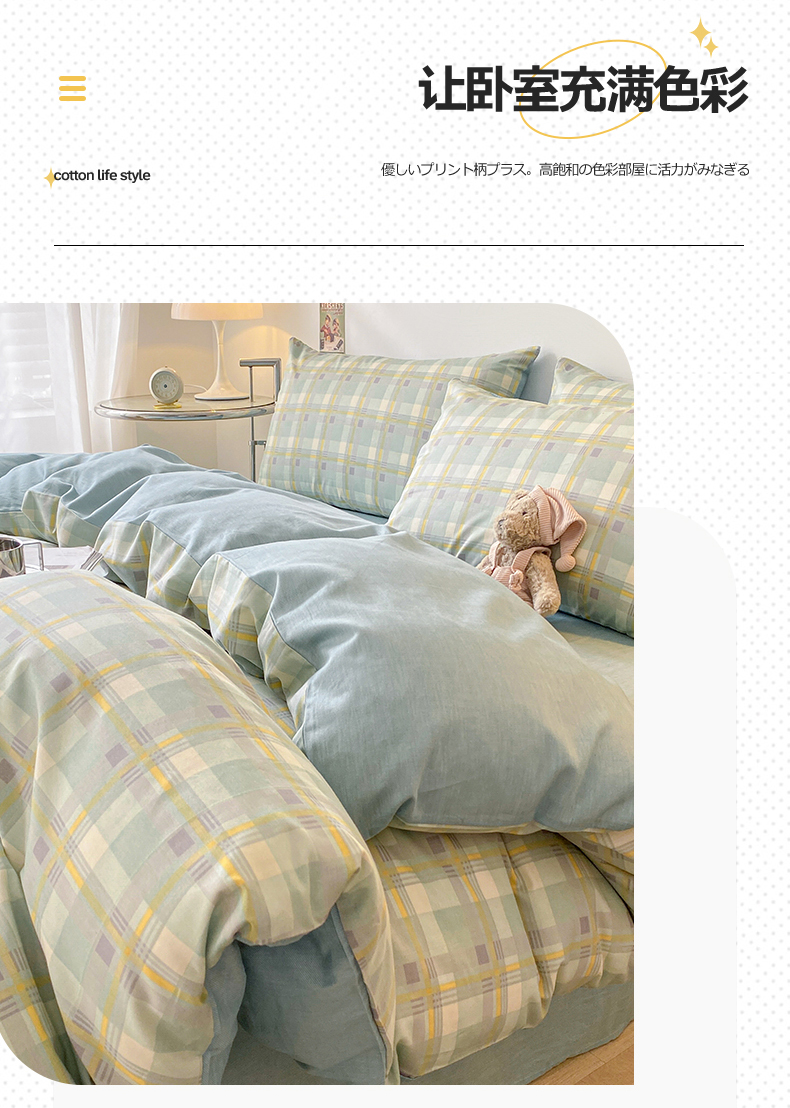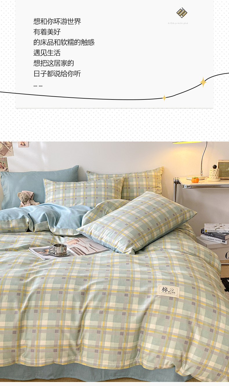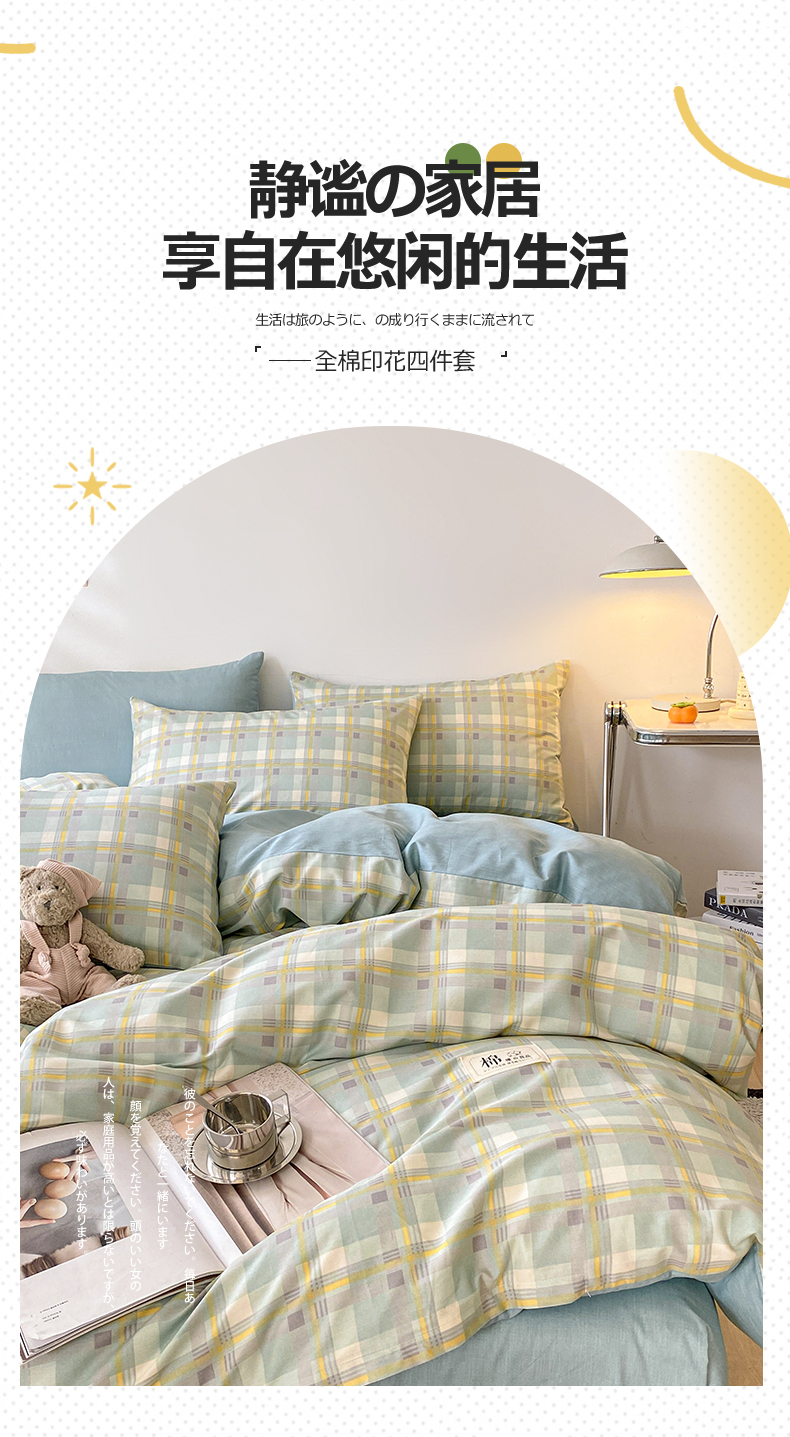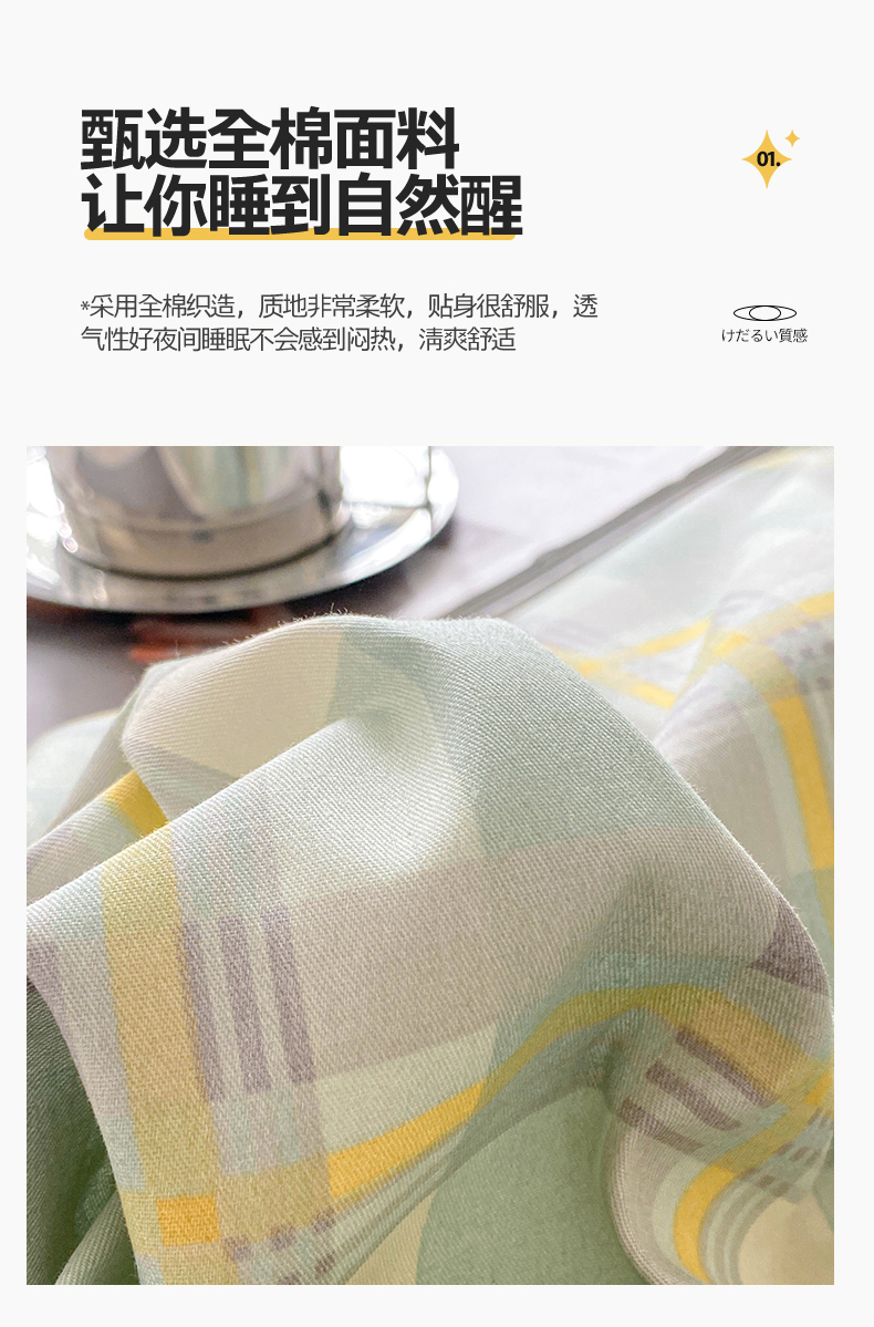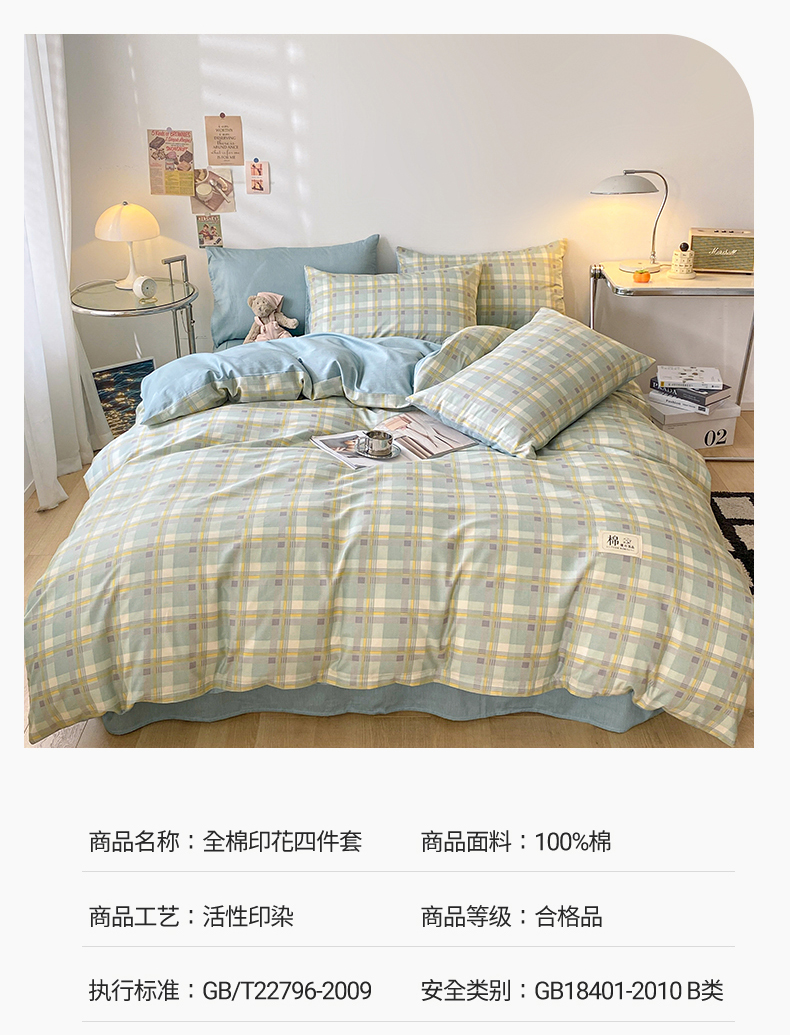商品名称:澜妃 2025春夏新款12868全棉纯棉印花单被套 简约-绿