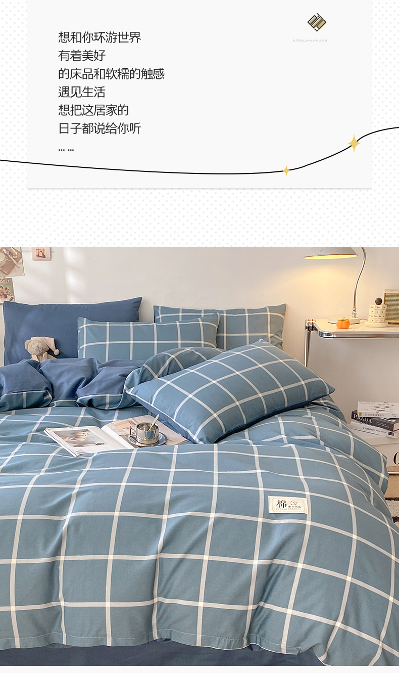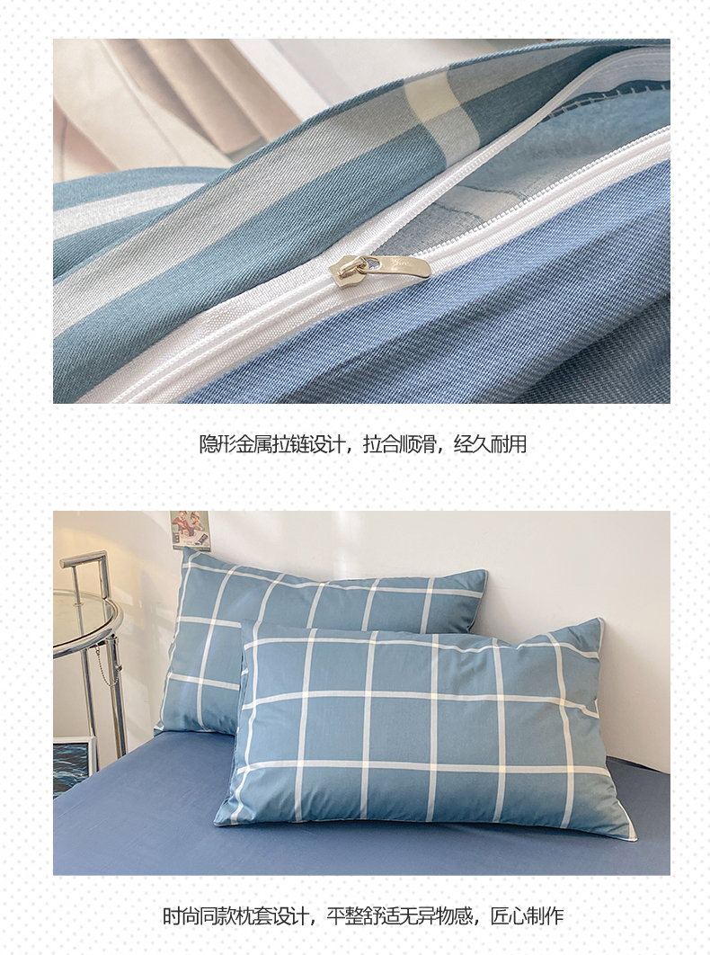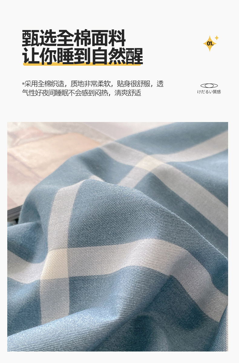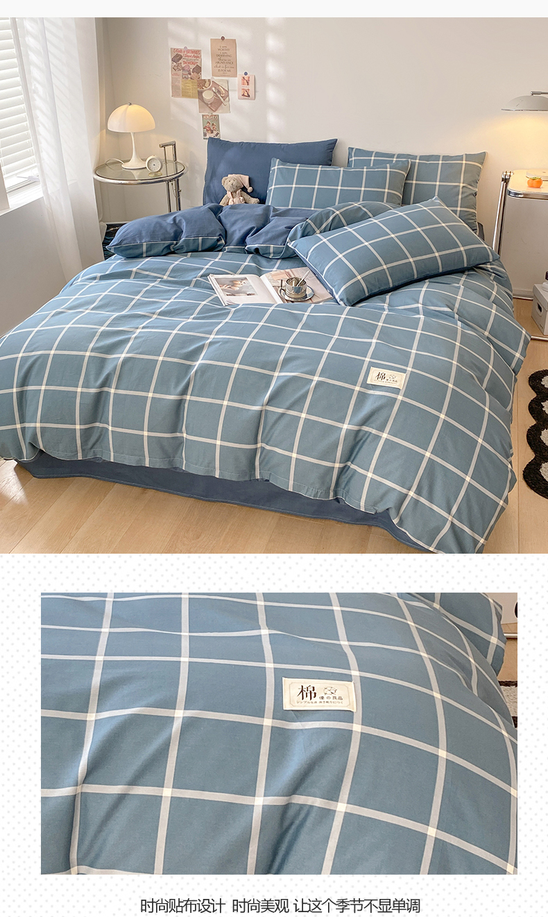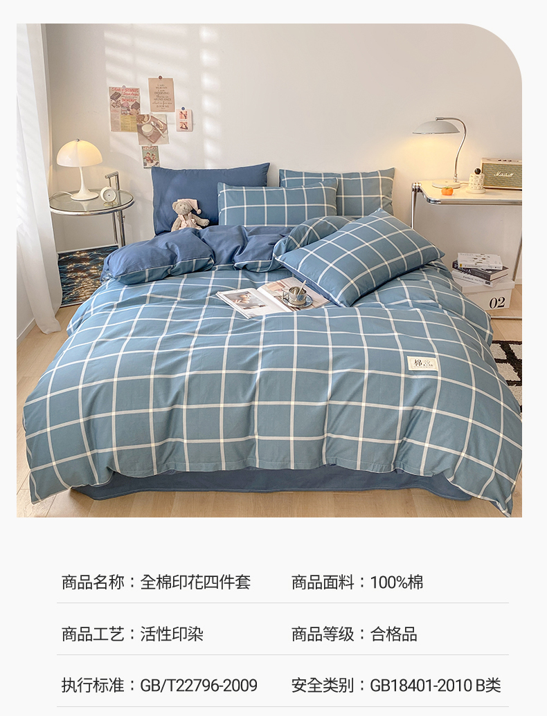 商品名称:澜妃 2025春夏新款12868全棉纯棉印花单被套 深蓝大格