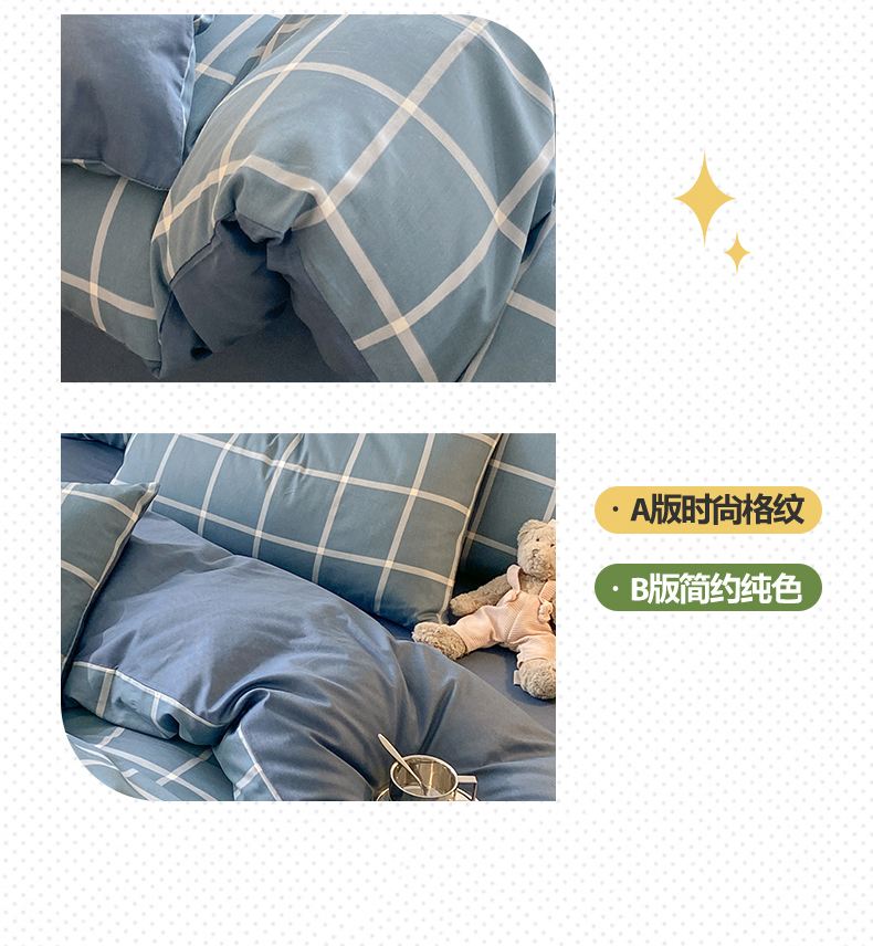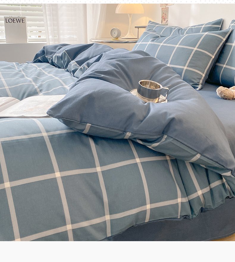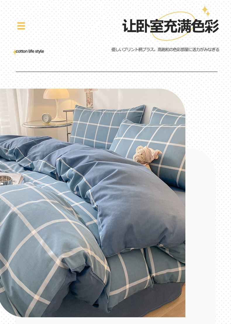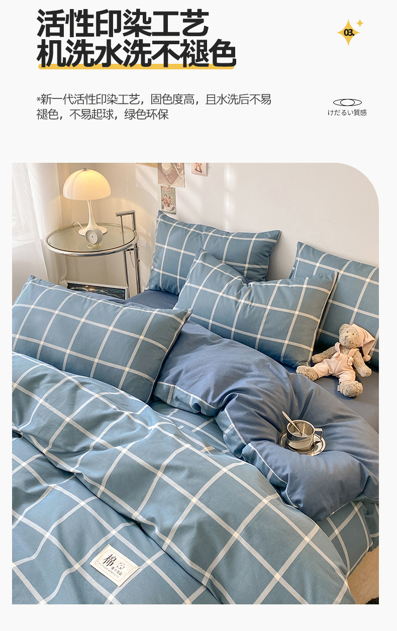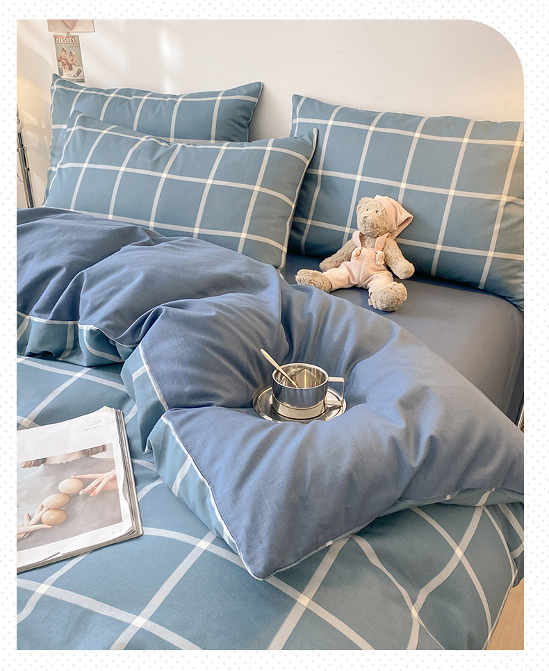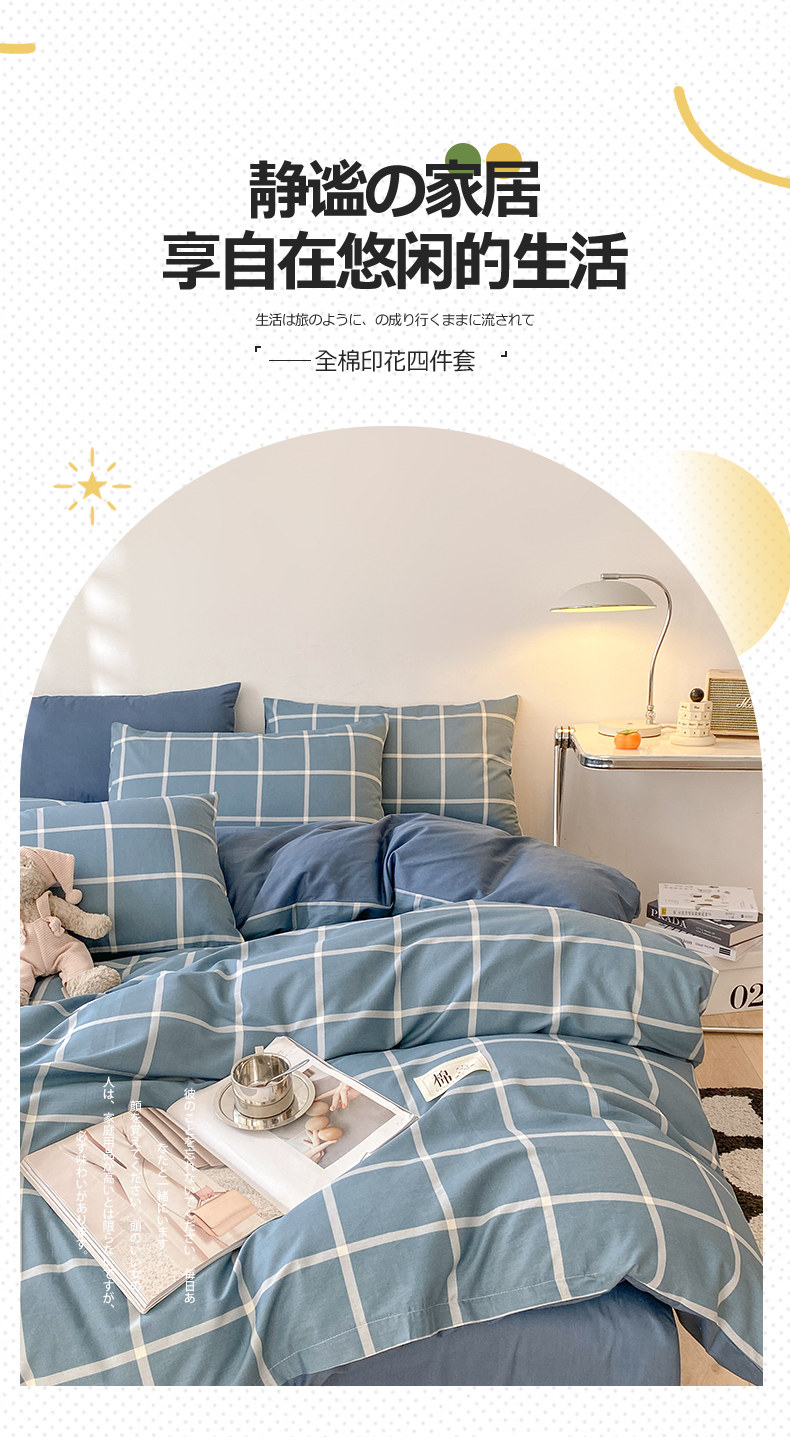 商品名称:澜妃 2025春夏新款12868全棉纯棉印花单被套 深蓝大格