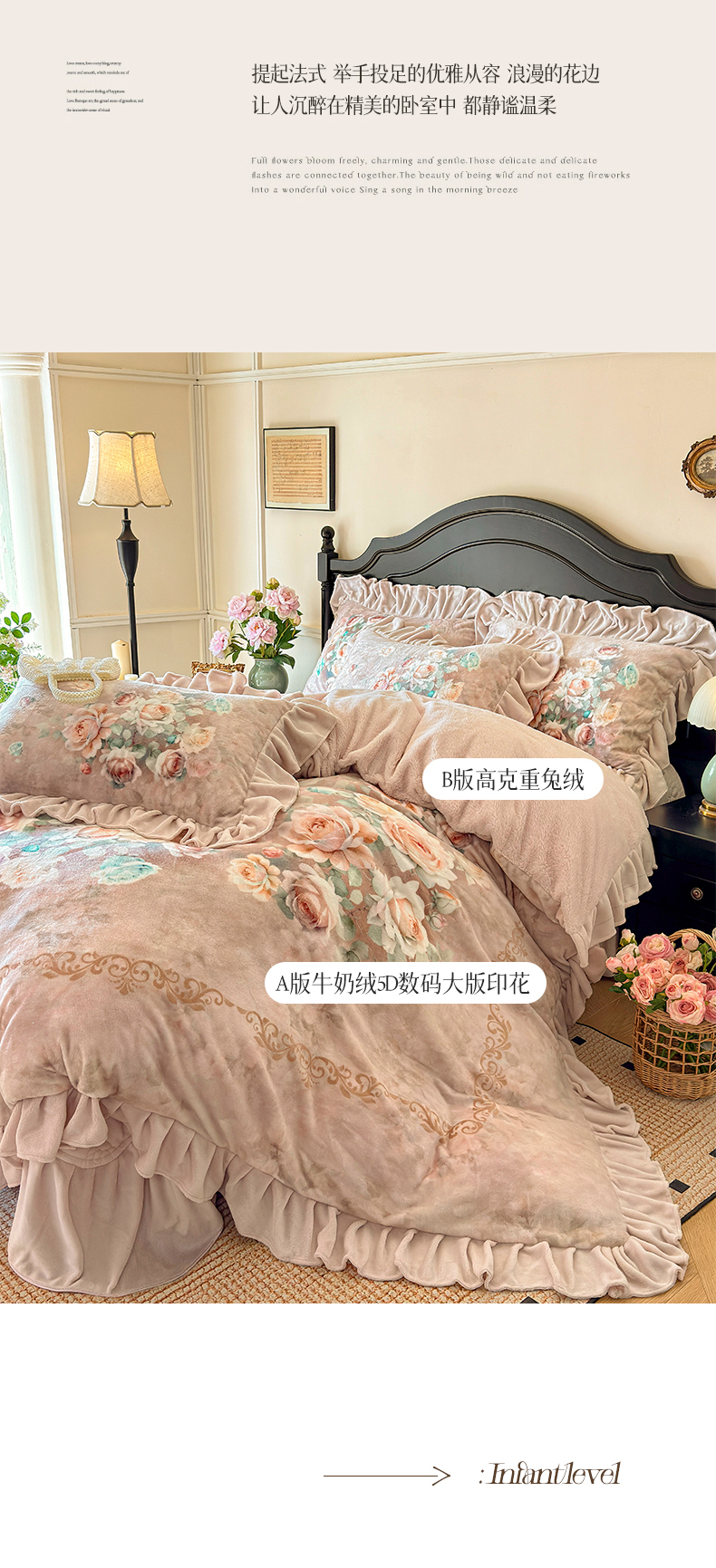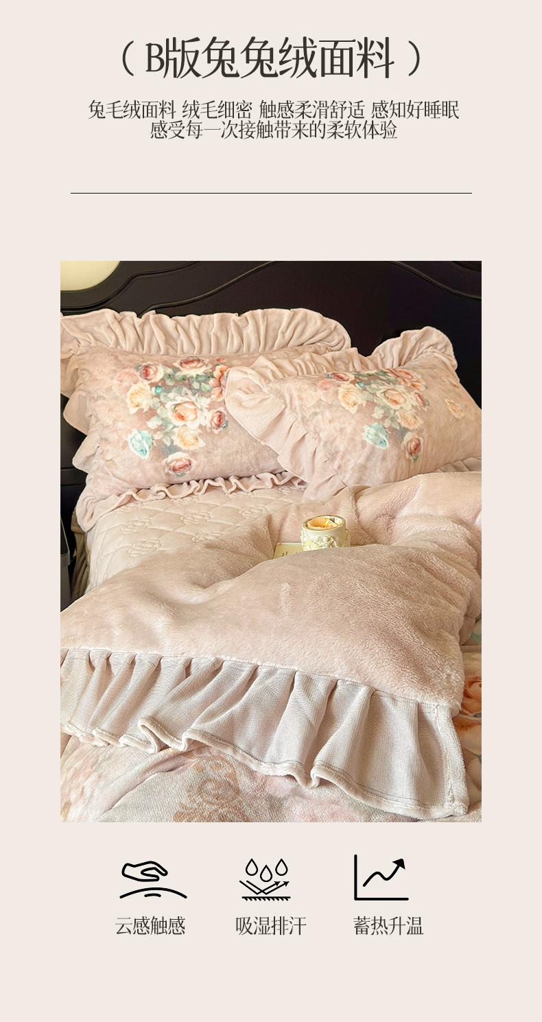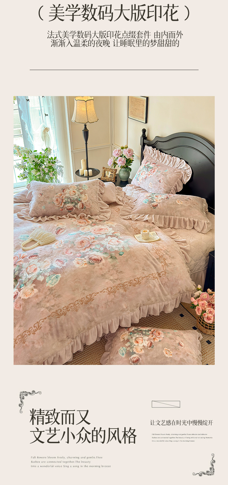 (总)宜凡家纺 2025新款兔绒提花牛奶绒夹棉床裙四件套,爱心 少女粉,爱心 粉紫,爱心 驼色,蝶舞 大红,蝶舞 米色,蝶舞 浅紫,蝶舞 玉色,简爱 苍青,简爱 豆沙紫,简爱 玉色,樱桃 苍青,樱桃 豆沙紫,樱桃 奶油白