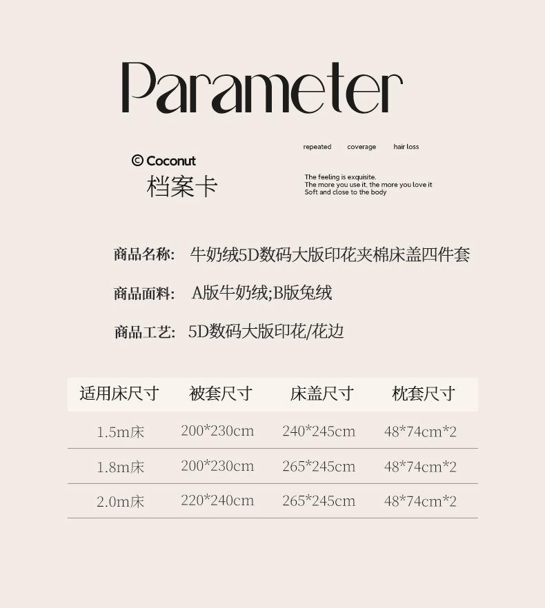 商品名称:宜凡家纺 2025新款牛奶绒5D数码大板印花床盖四件套 诺曼庄园 浅卡其