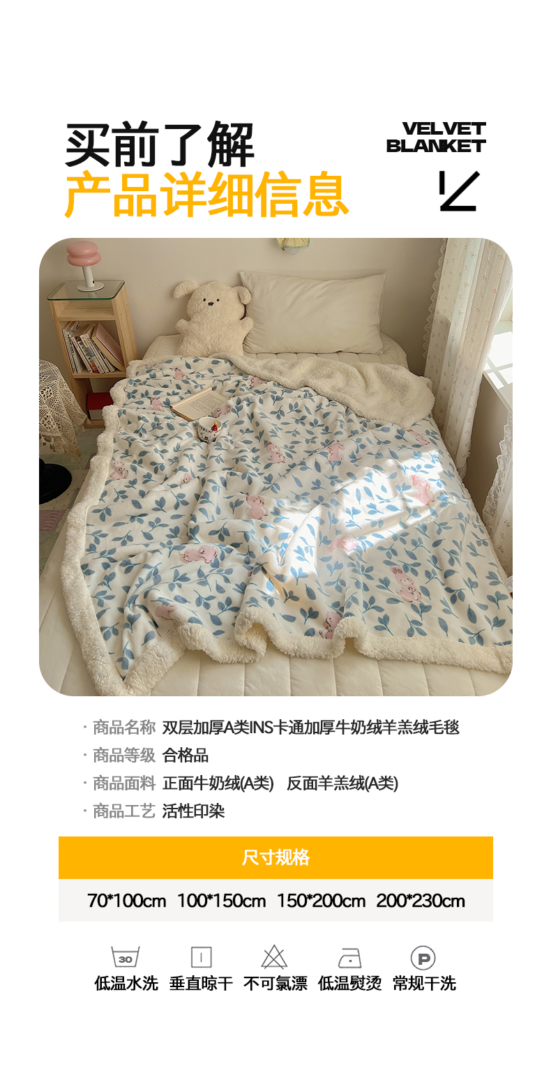 商品名称:葡萄家 2025新款A类ins小清新少女可爱奶油猫咪卡通加厚牛奶绒羊羔绒多功能毛毯毯子 绒毛毯-MT可可兔