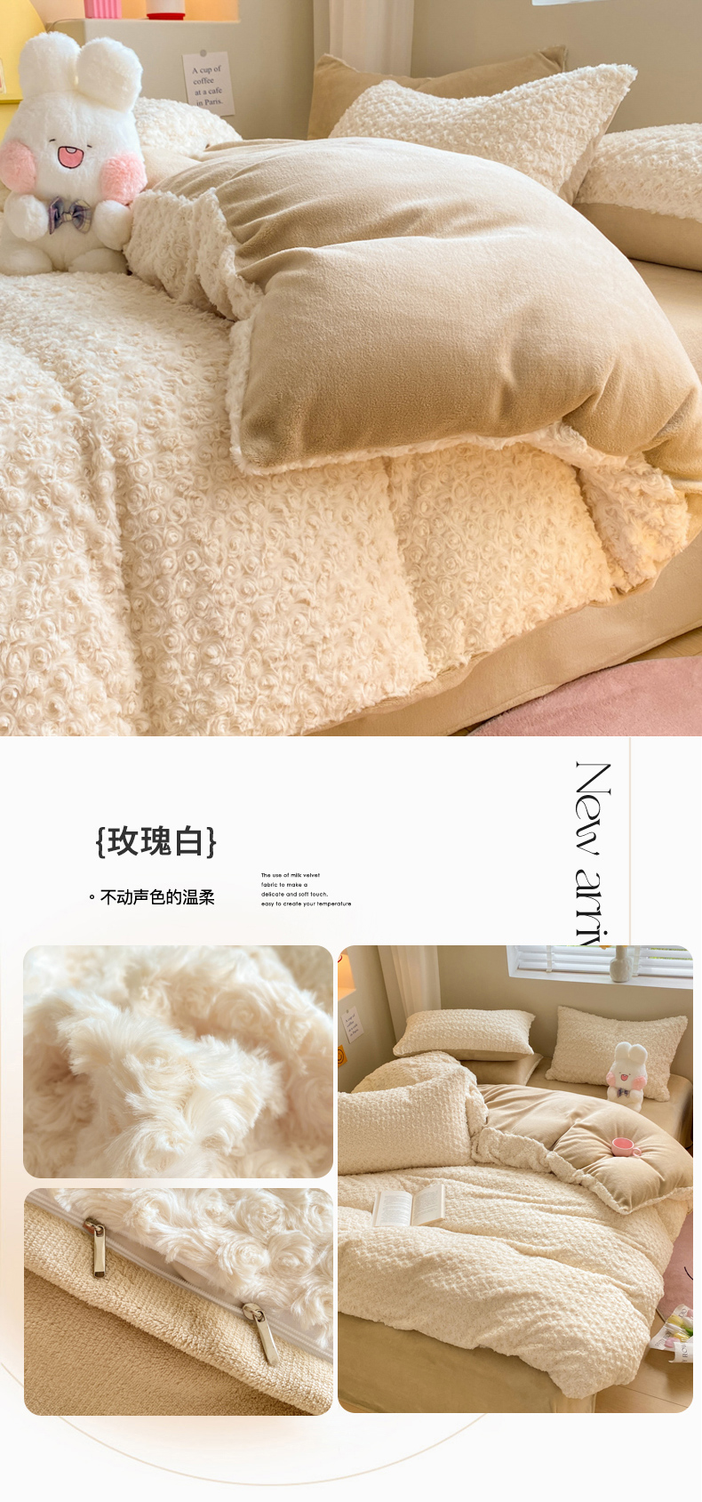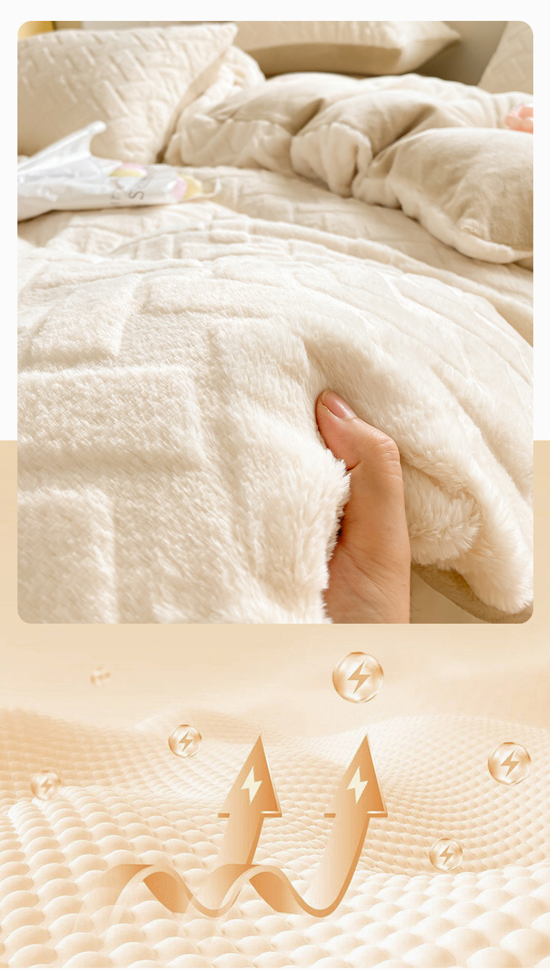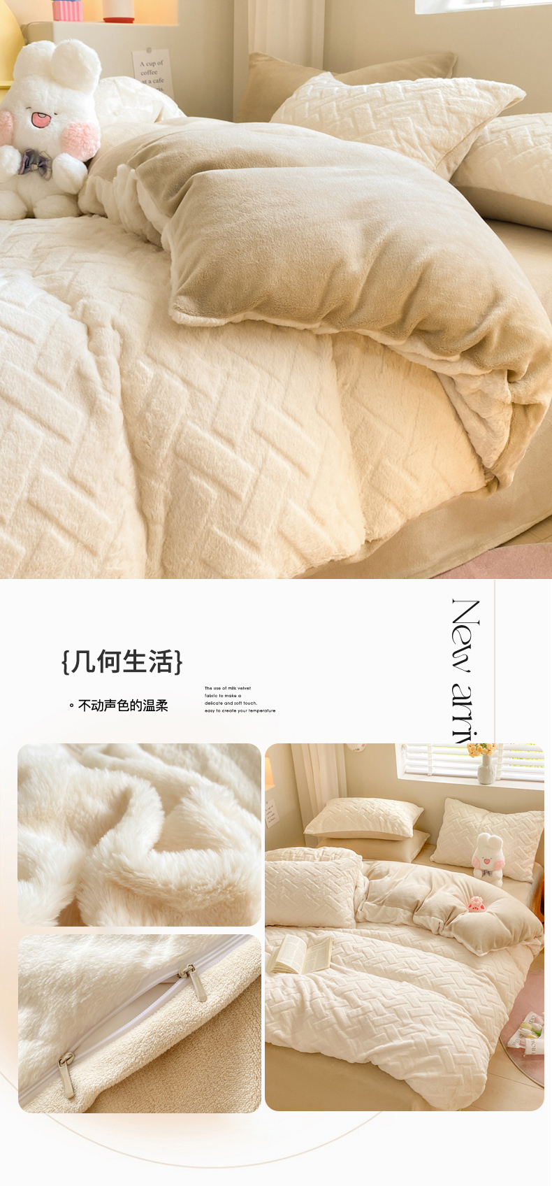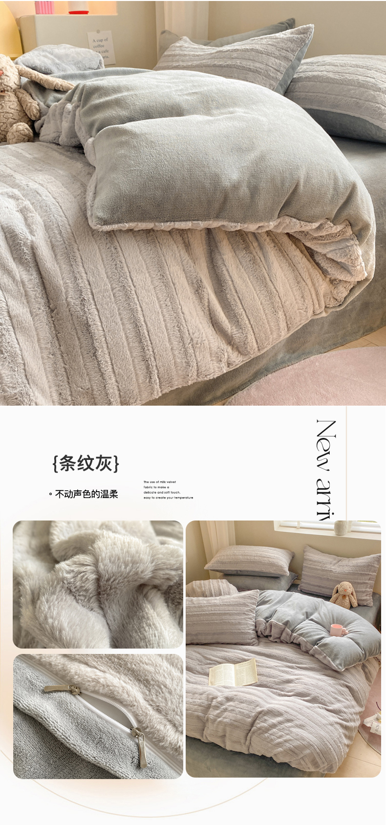 商品名称:名兮家居 2025冬季新款加厚仿兔绒单被套 条纹-灰