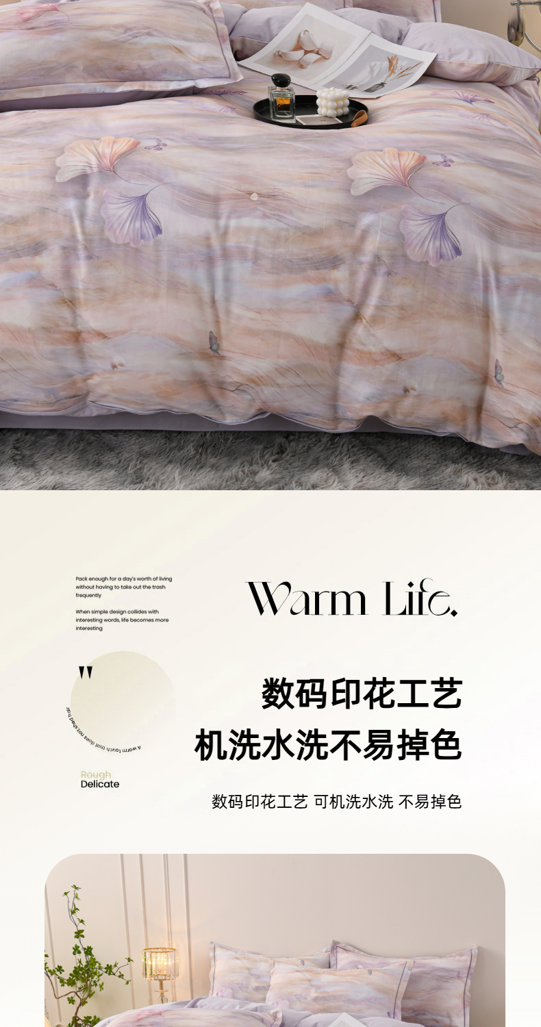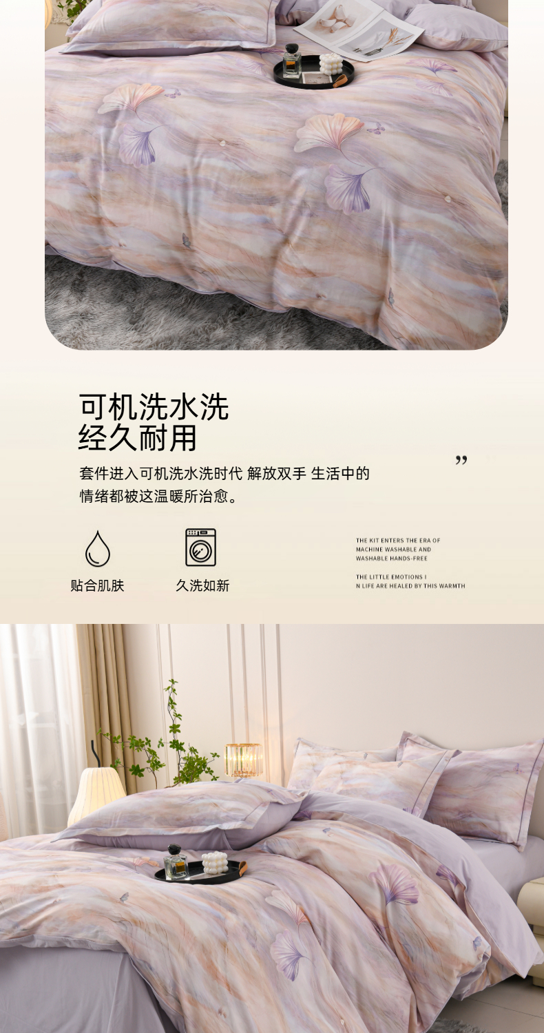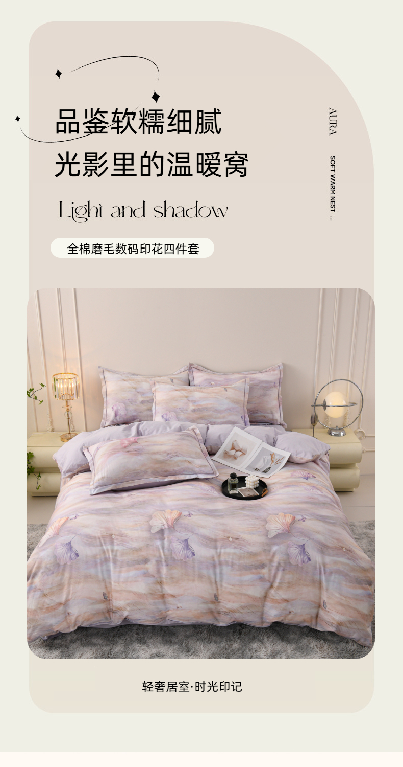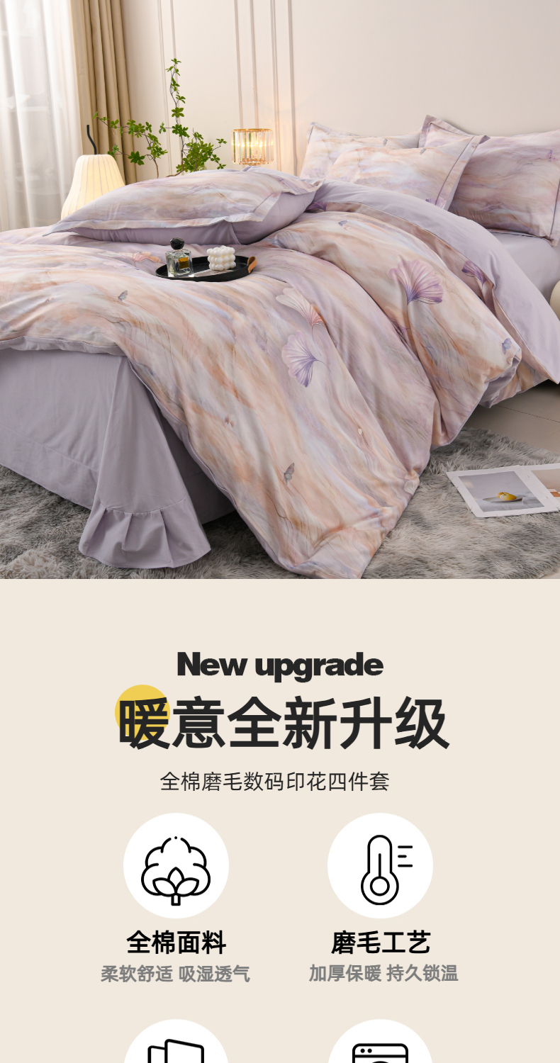 商品名称:润淳家居 2025新款全棉生态磨毛数码印花四件套 霁雪 紫